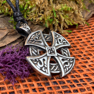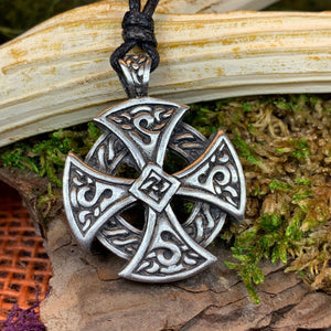 Lead-free pewter pendant of a Celtic cross with classic Celtic design on an adjustable waxed hemp cord that can be worn as a choker or up to 30 inches long - you choose the length that is right for you simply by adjusting the cord! The waxed hemp cord is water resistant too!