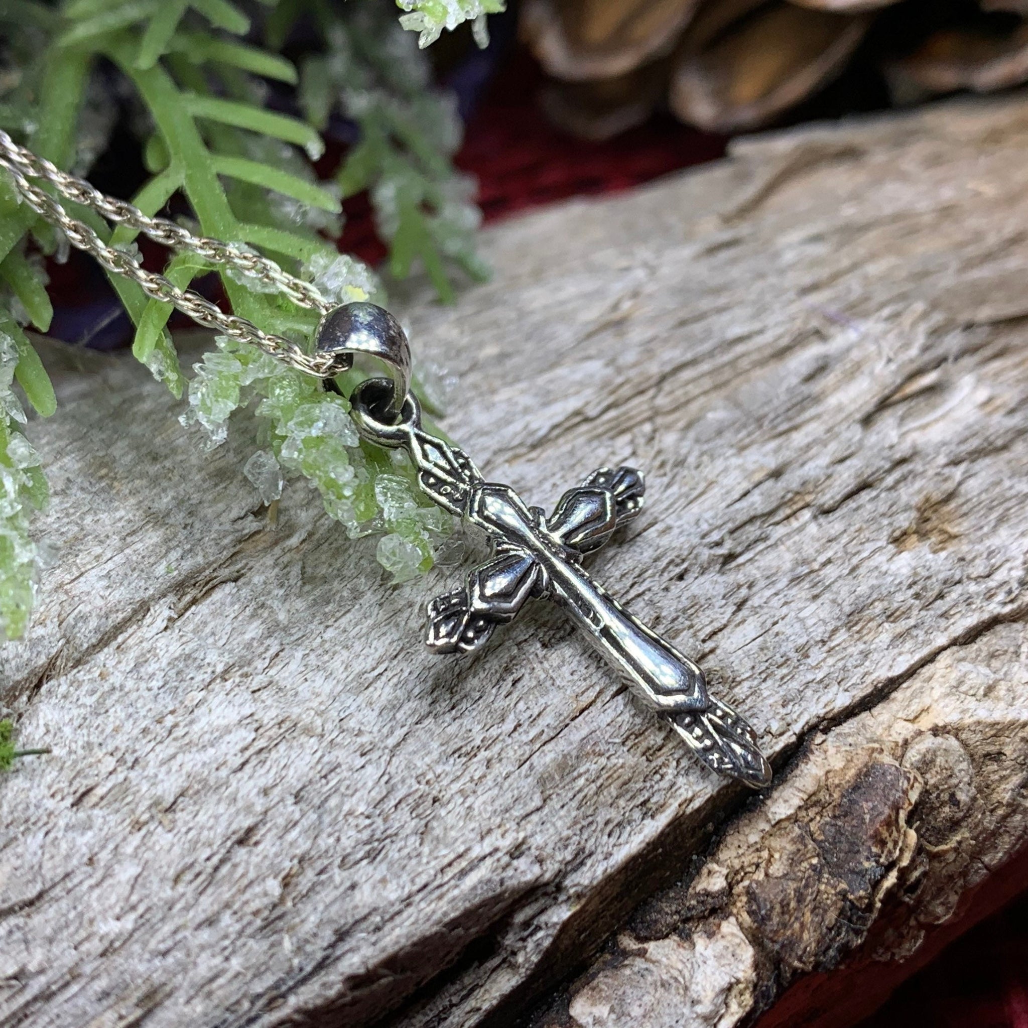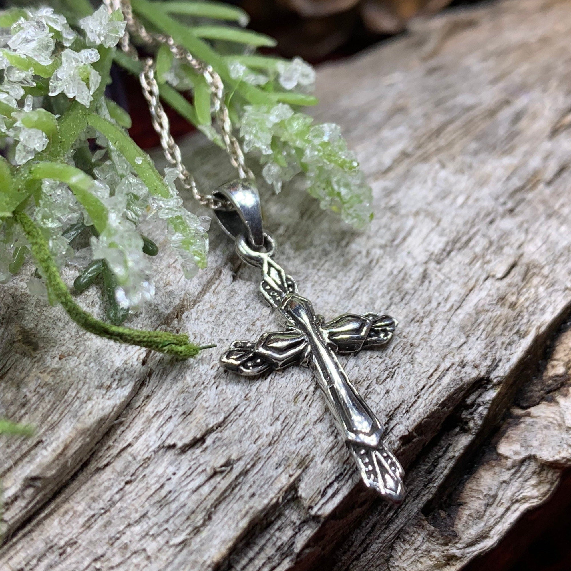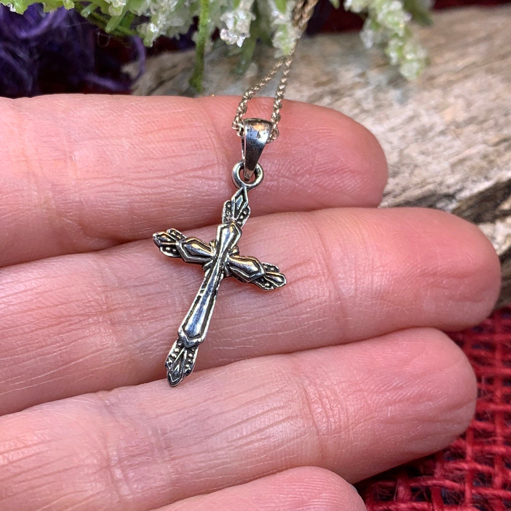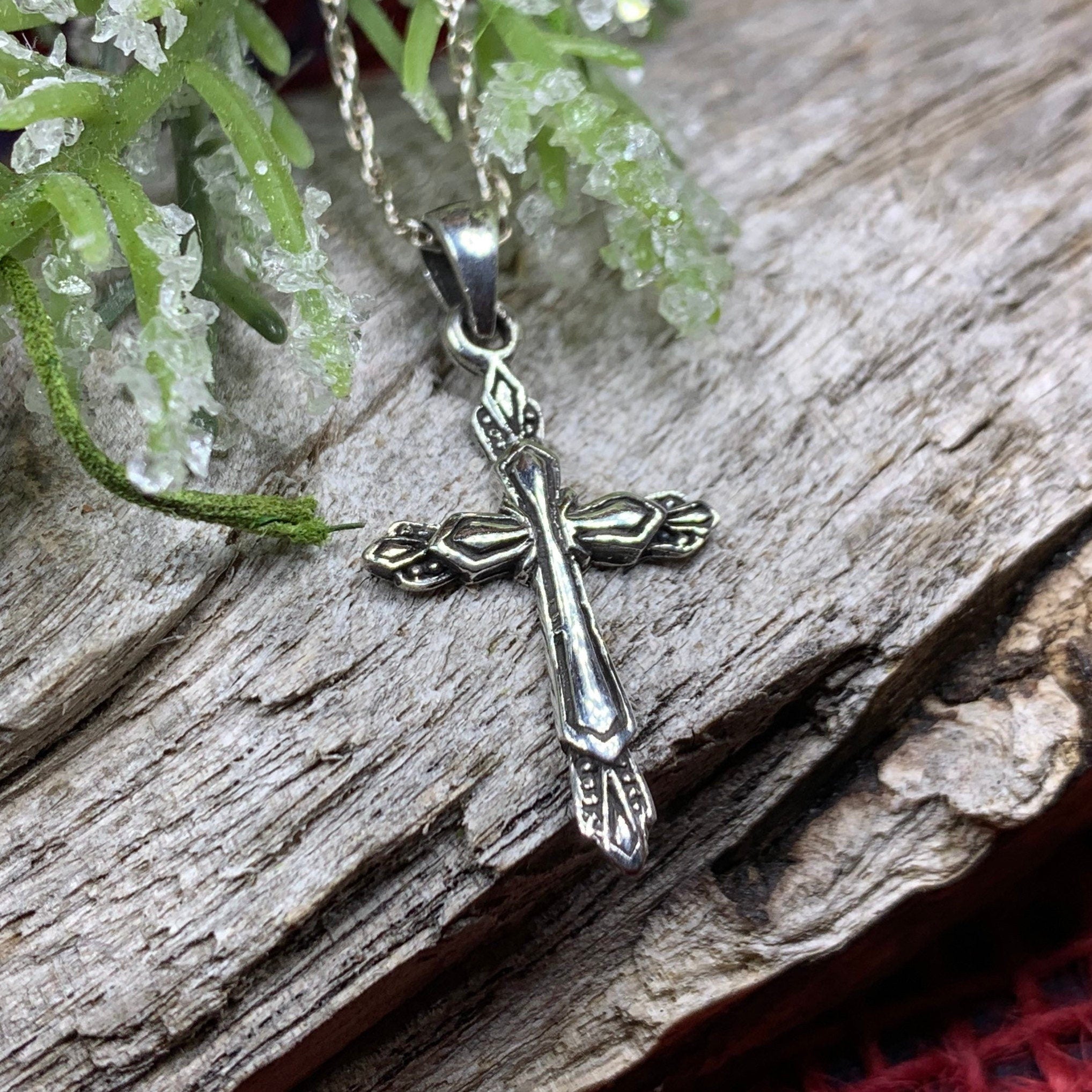 Solid Sterling Silver -- A lovely handmade cross with simple lines in highly polished sterling silver with elegant marcasite gemstones for a unique artisan piece.