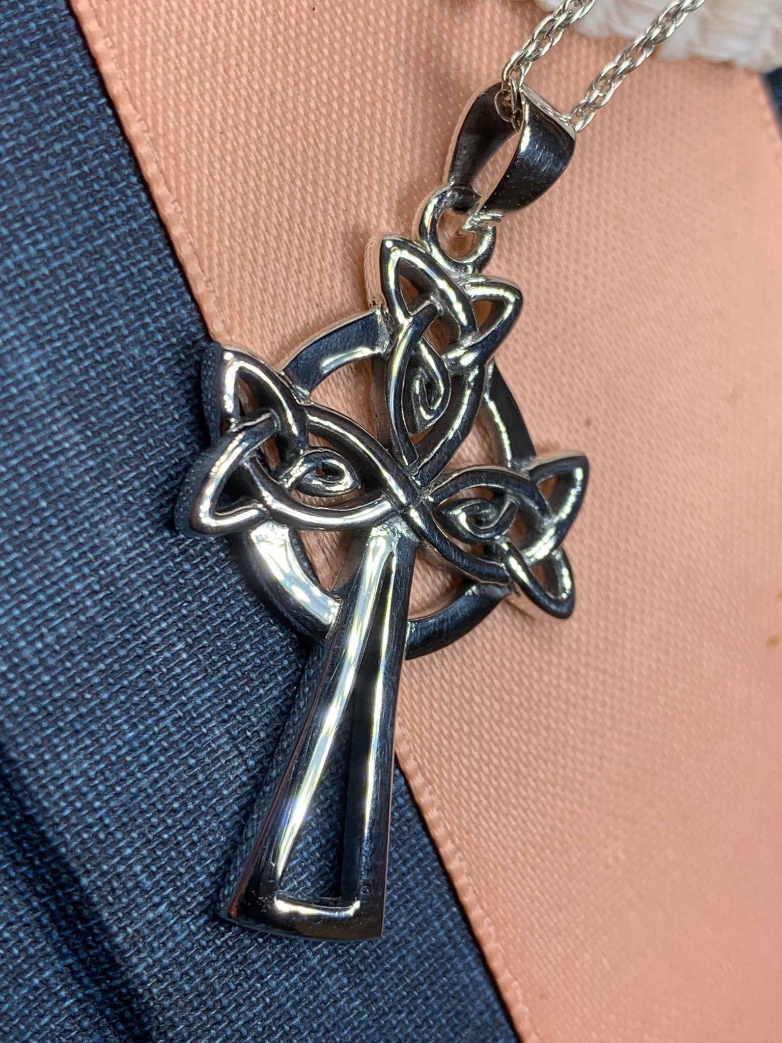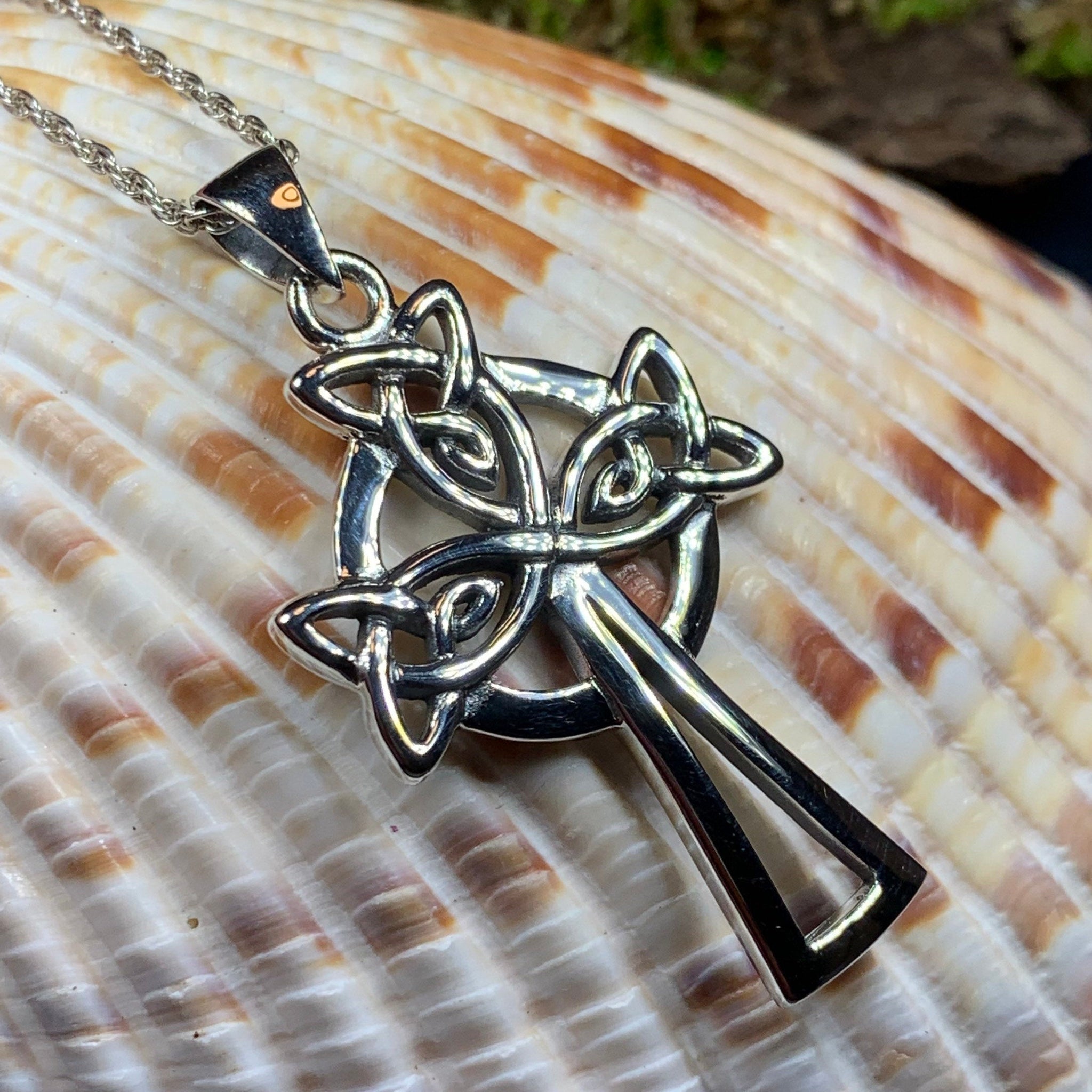 This beautiful solid sterling silver Celtic Cross incorporates the Celtic knot work in a lovely open weave design...a unique piece that will be loved for a lifetime.