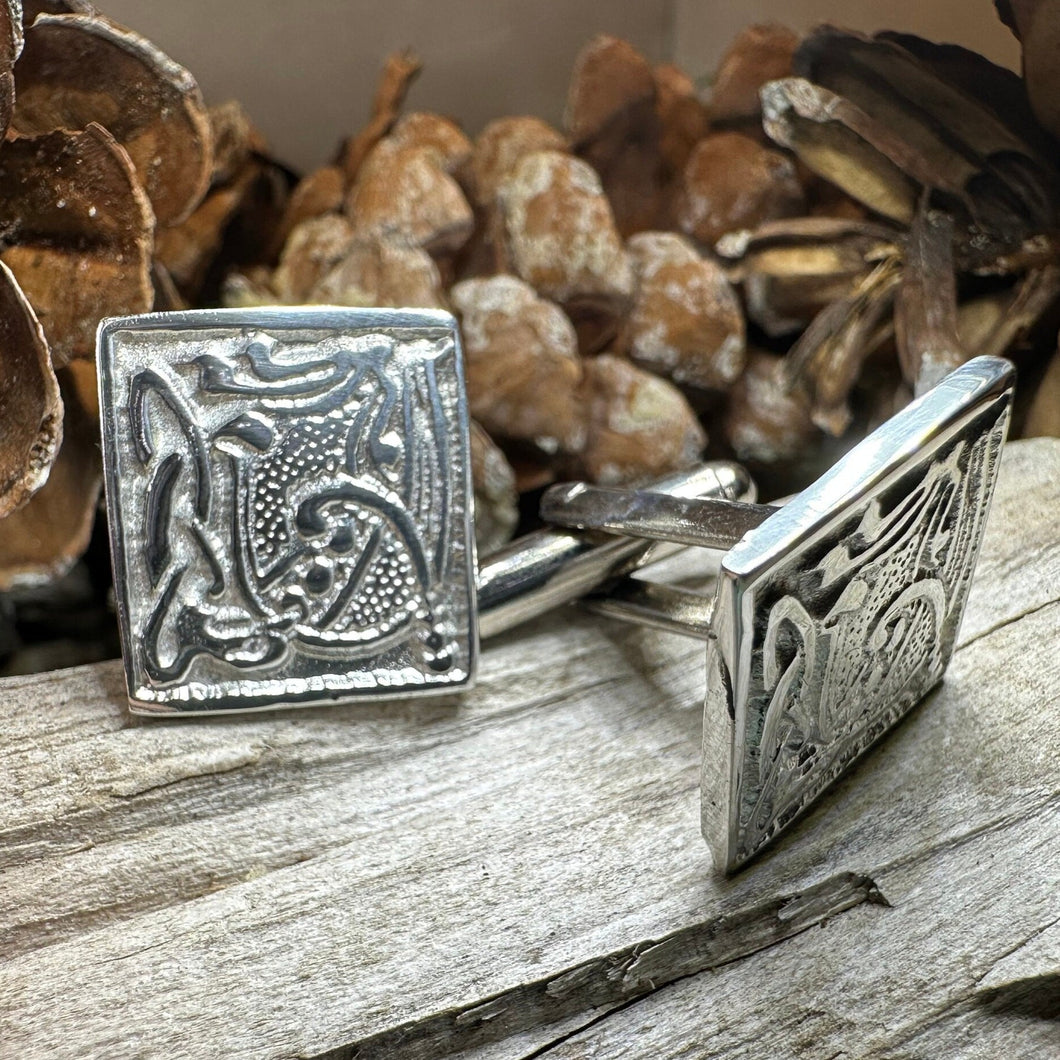 Beautiful Celtic Knot Square shaped pewter cuff links that feature the classic Celtic design with high polish.