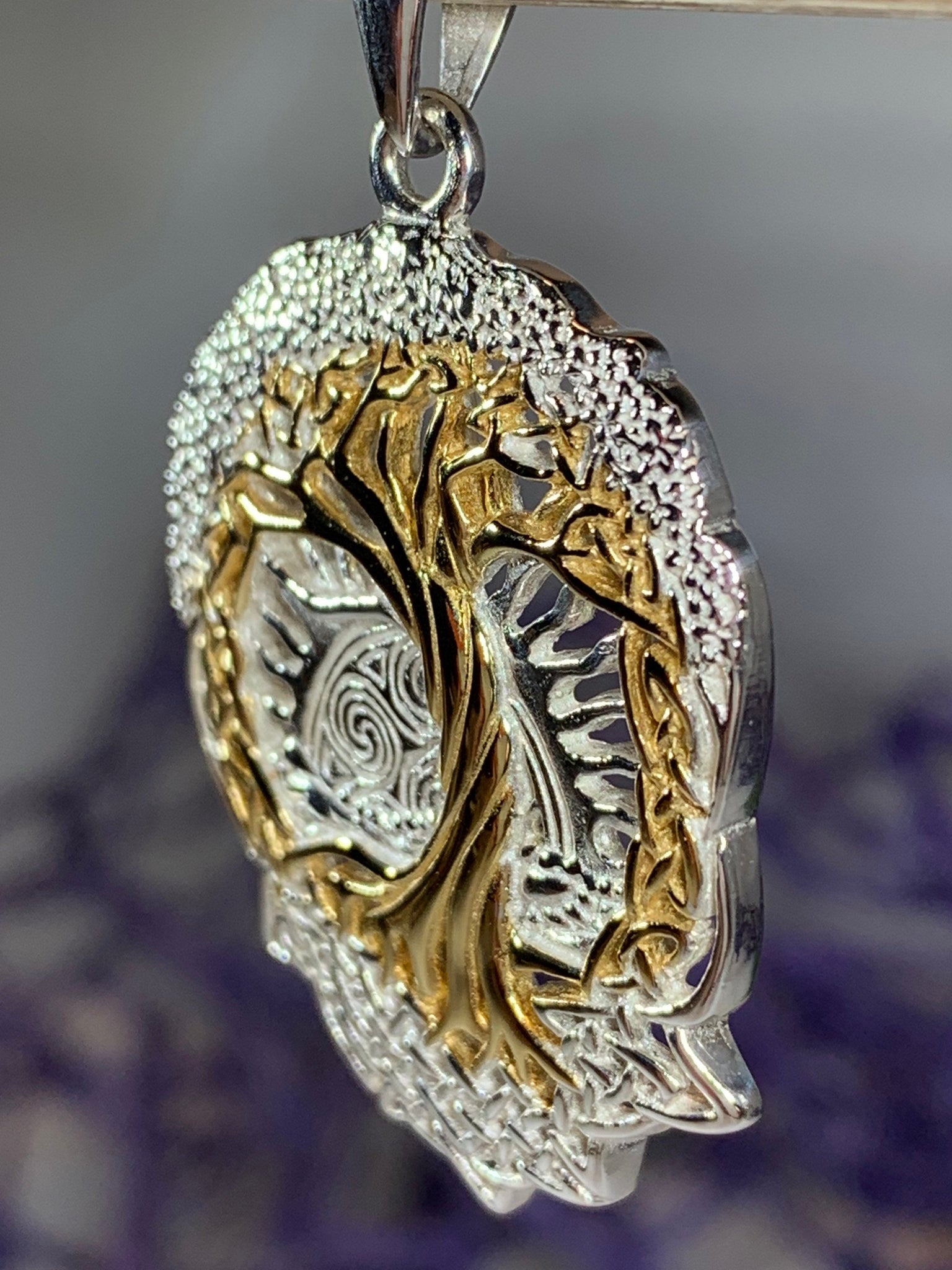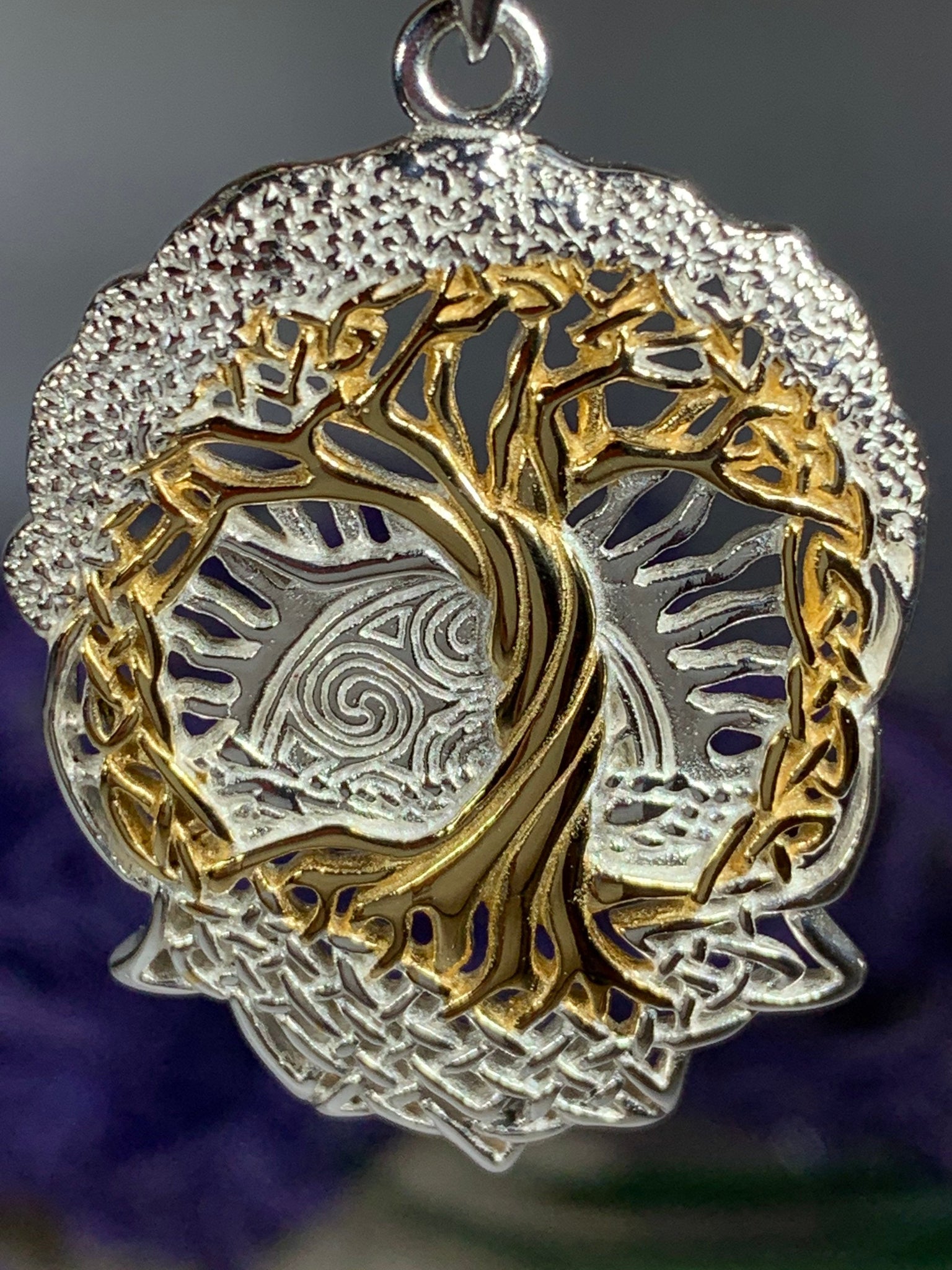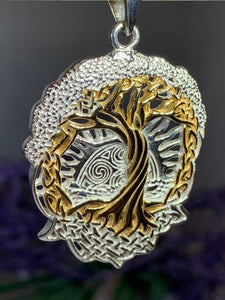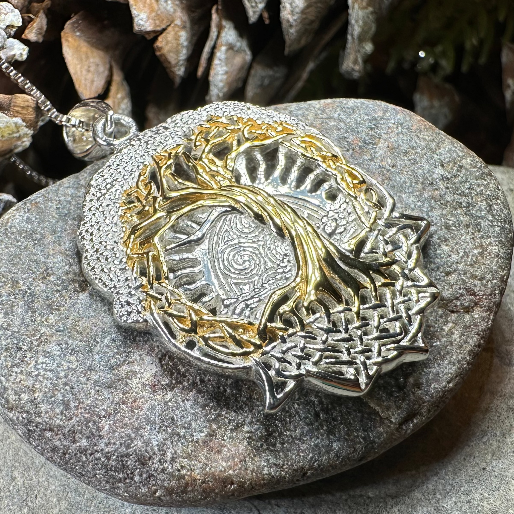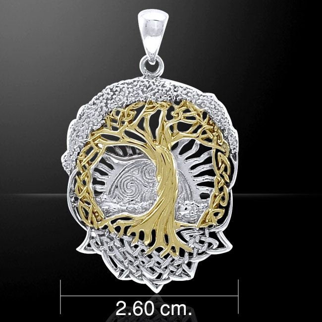 Solid Sterling Silver Celtic Tree of Life Pendant with 14k gold detailing