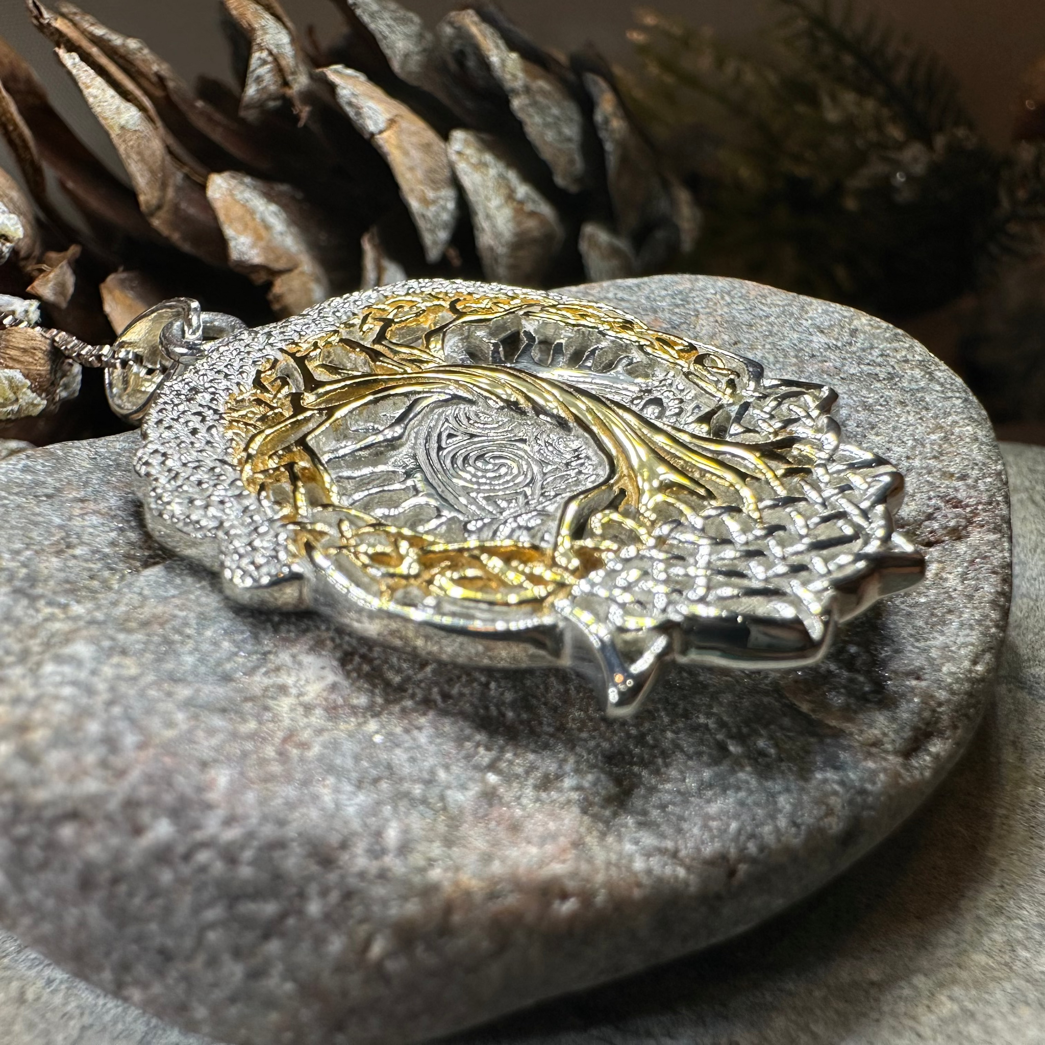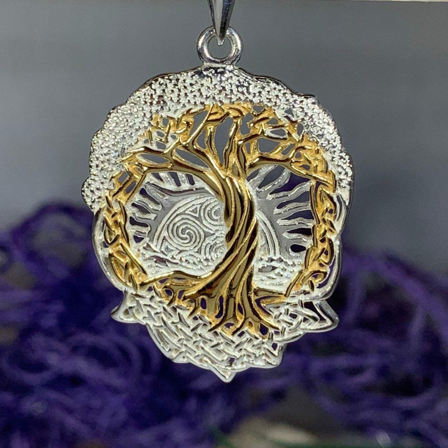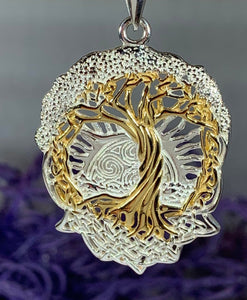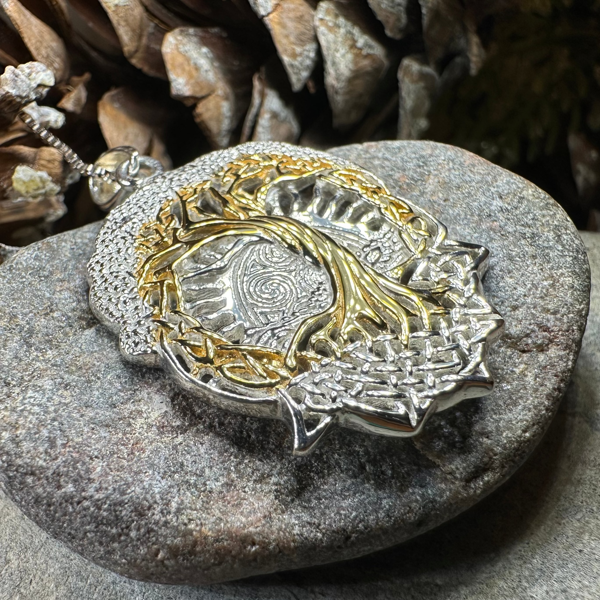 Solid Sterling Silver Celtic Tree of Life Pendant with 14k gold detailing