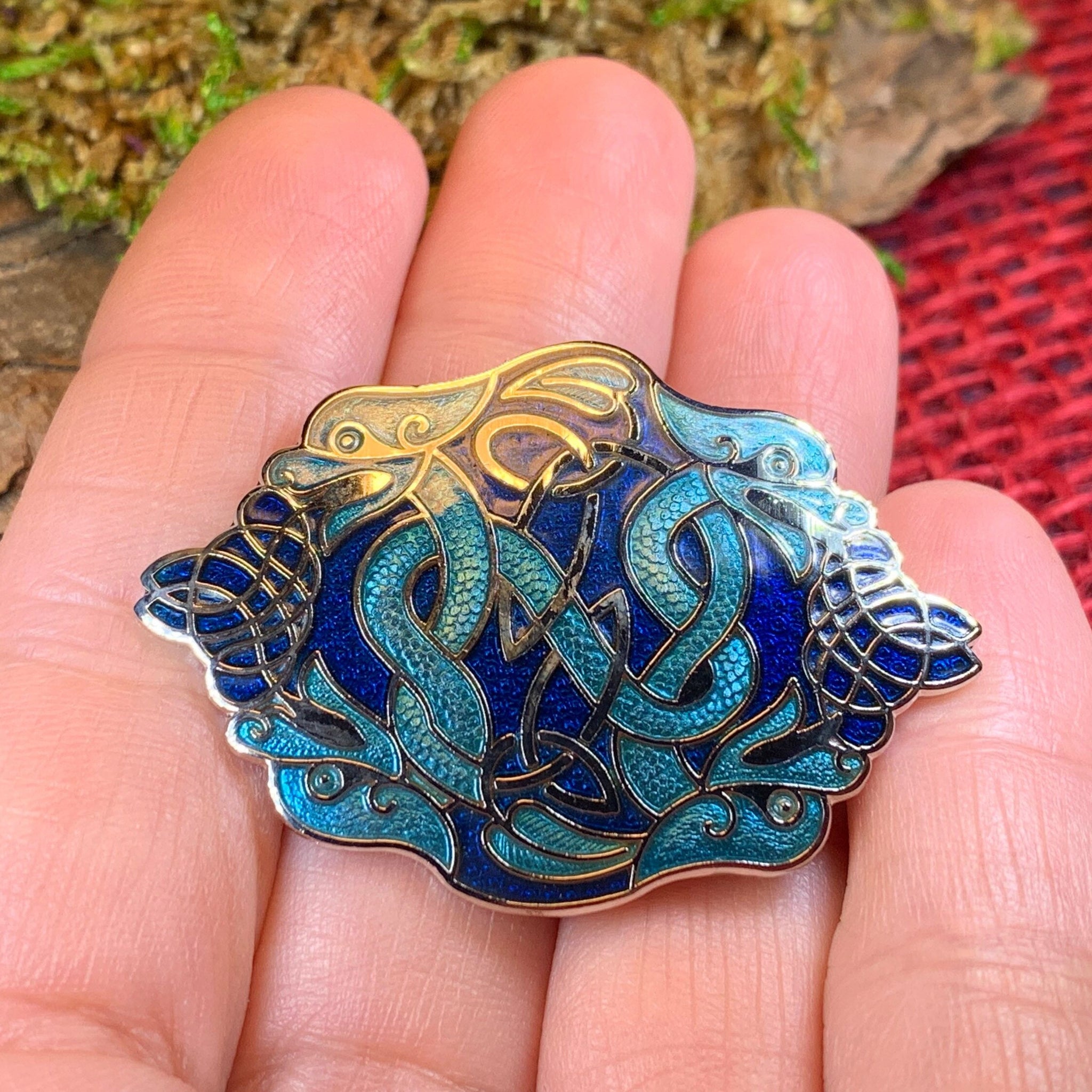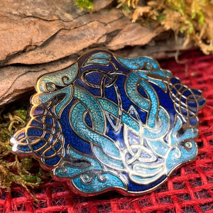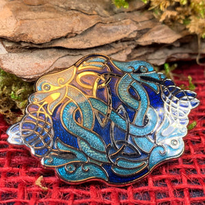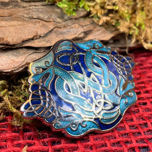 This beautifully detailed oval brooch shows every bit of this brave Celtic dragon. The perfect size for a jacket, lapel or cap.