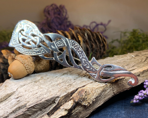 This beautiful kilt pin is in the traditional design of a stylized Celtic dragon with the twists and turns of a Celtic knot.