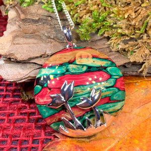 This beautiful piece is a work of art that honors Scotland and the Highlands. The center stone is made from heather collected in the Highlands, dyed in the vibrant colors of the countryside, and compressed into this gloriously colorful stone that will last a lifetime.