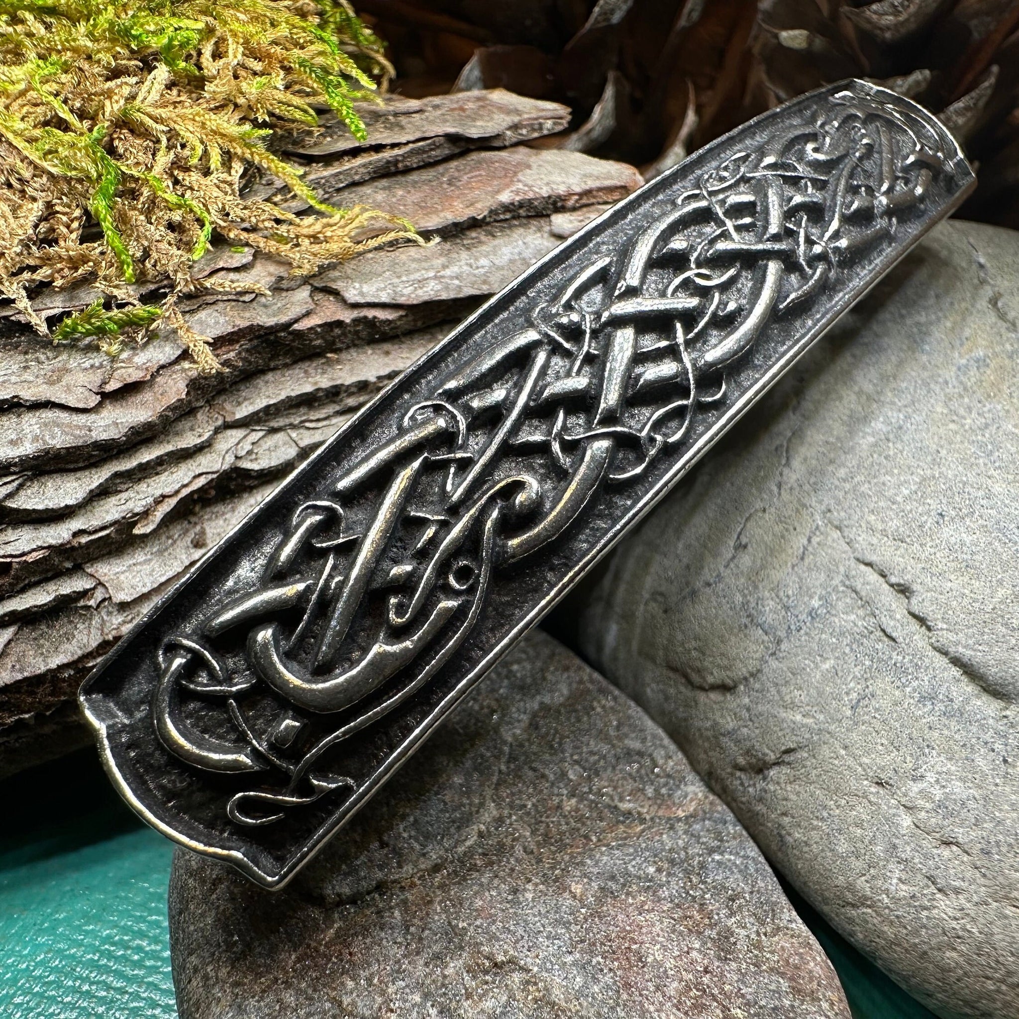 Pewter Celtic Knot Hair Clip is a perfect accessory to dress up a ponytail, bun or any hair style. The detail on this piece is amazing - you can see every detail!