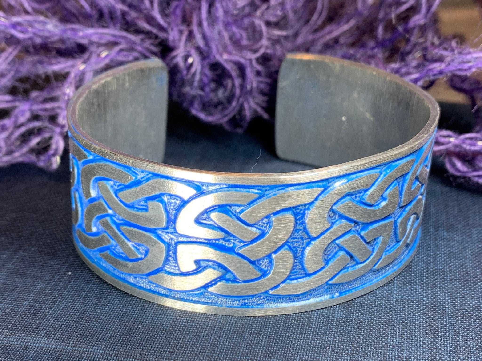 Bracelet is in the cuff style with an open back and can be adjusted for almost any wrist size. A rich, traditional Celtic look at a very amazing price!