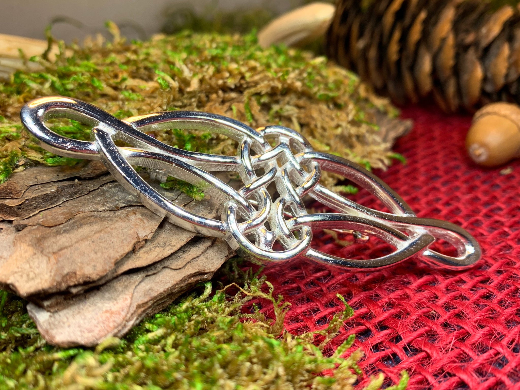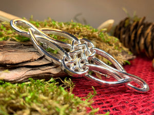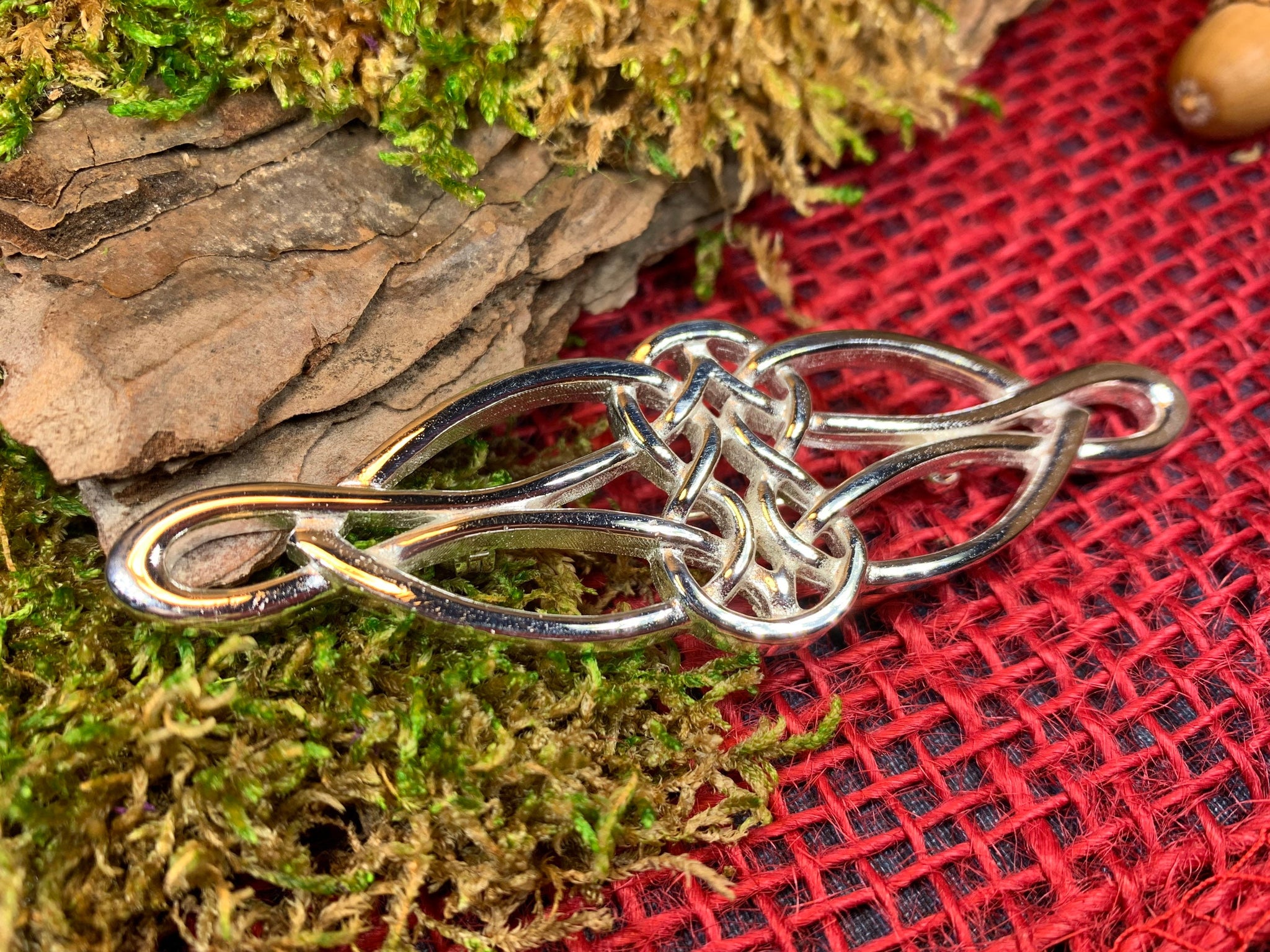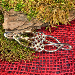 Celtic Pewter Brooch with detailed Celtic knotwork including four love knots. A beautiful polished or antiqued finish that is perfect for the Irish step dancer or any lover of Celtic culture!