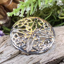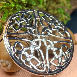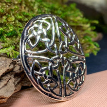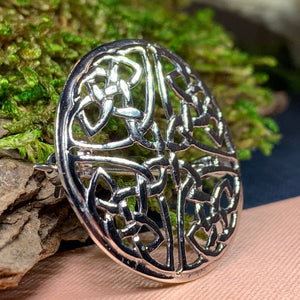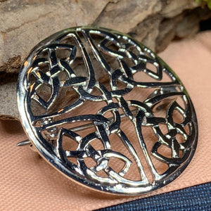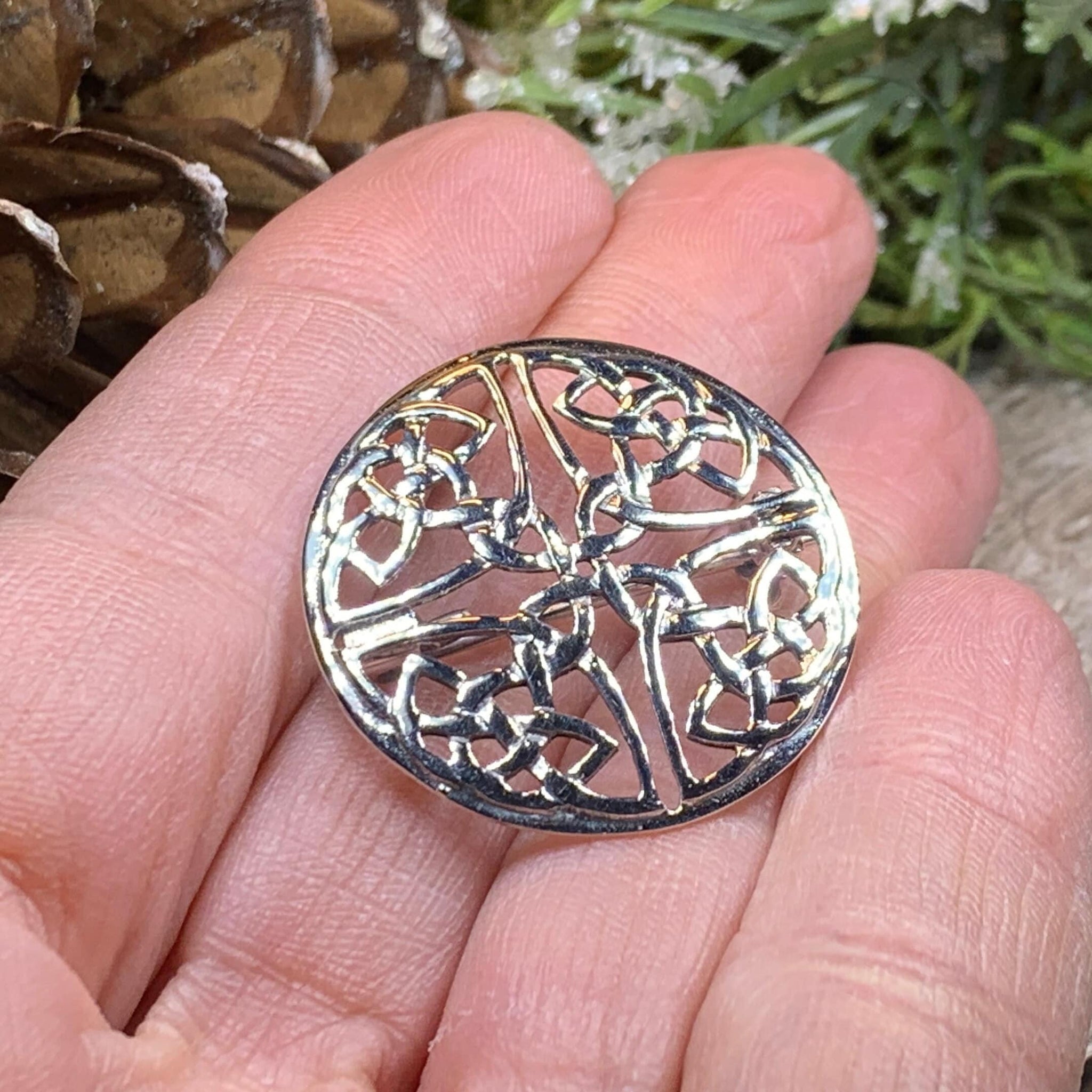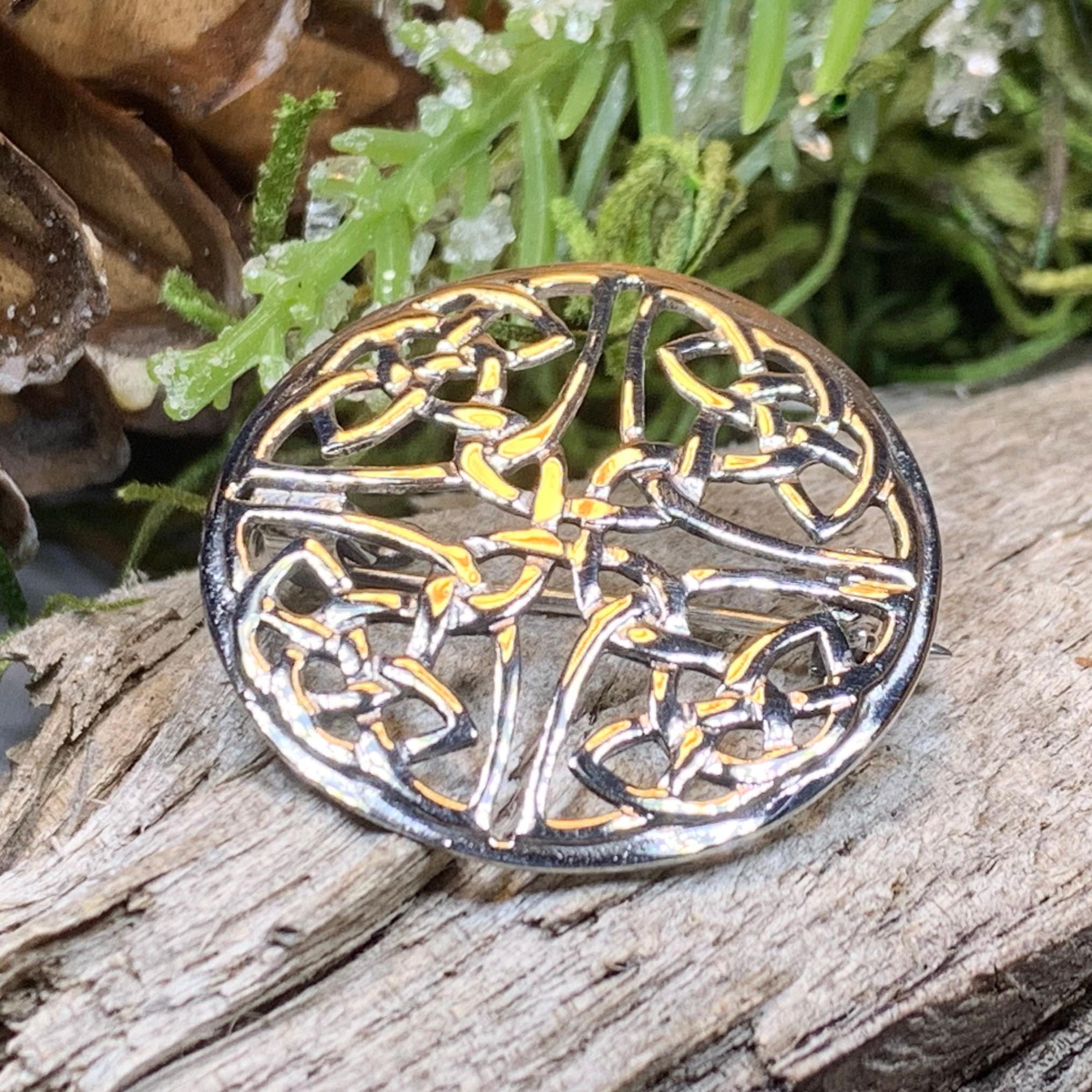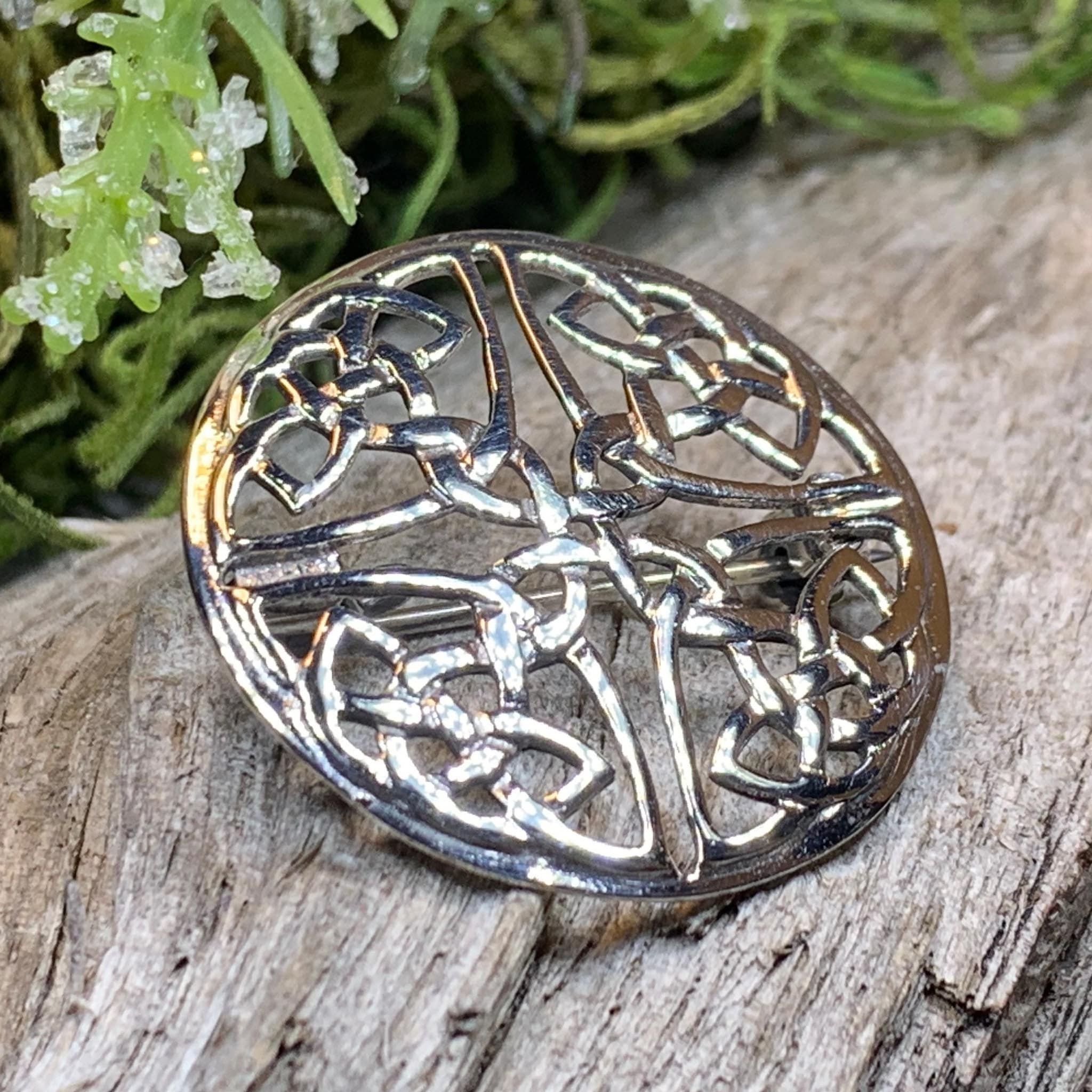 This handmade solid sterling silver brooch features the classic Celtic knot work design and a large black onyx cabochon at the center. A classic design that is versitile and elegant.