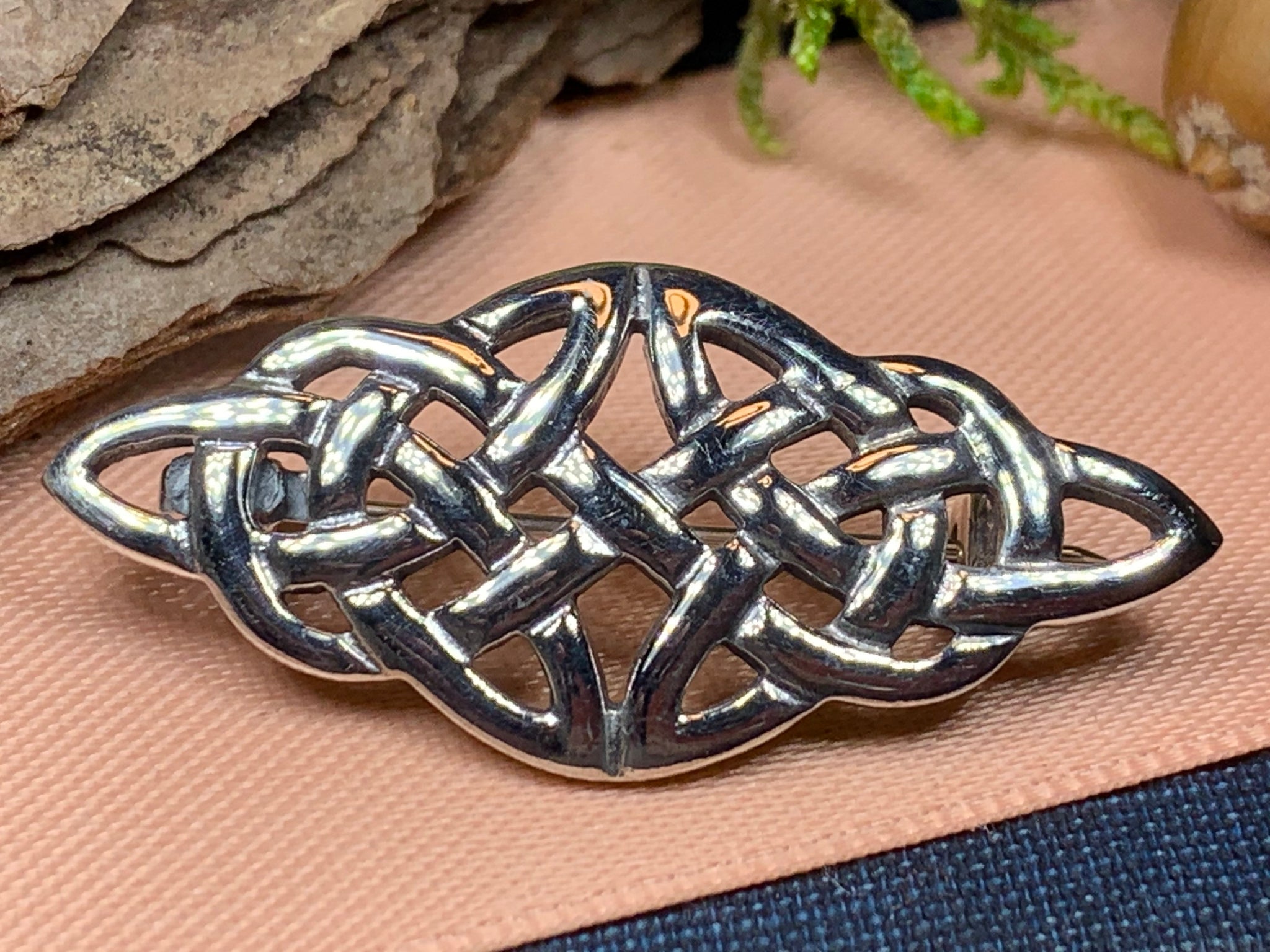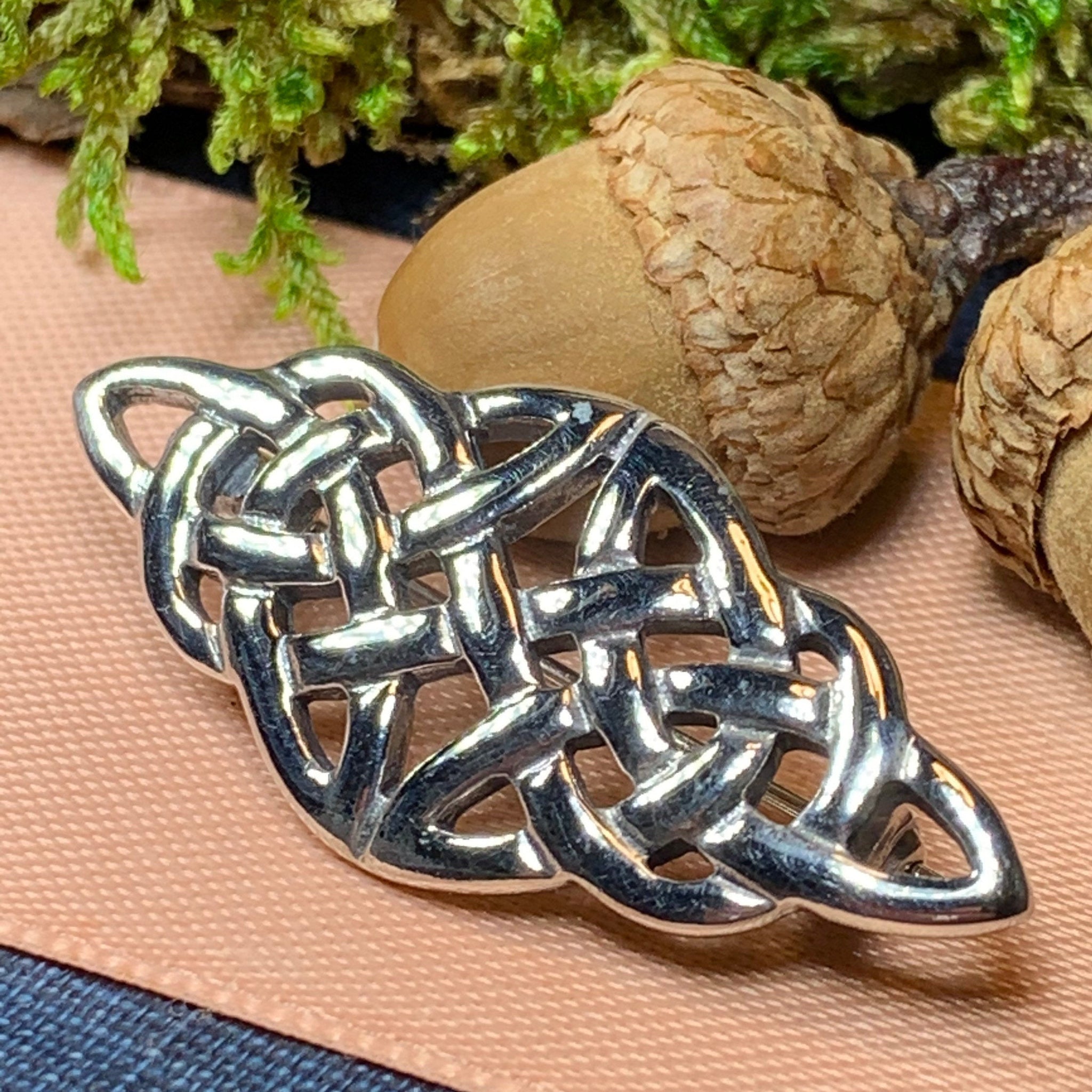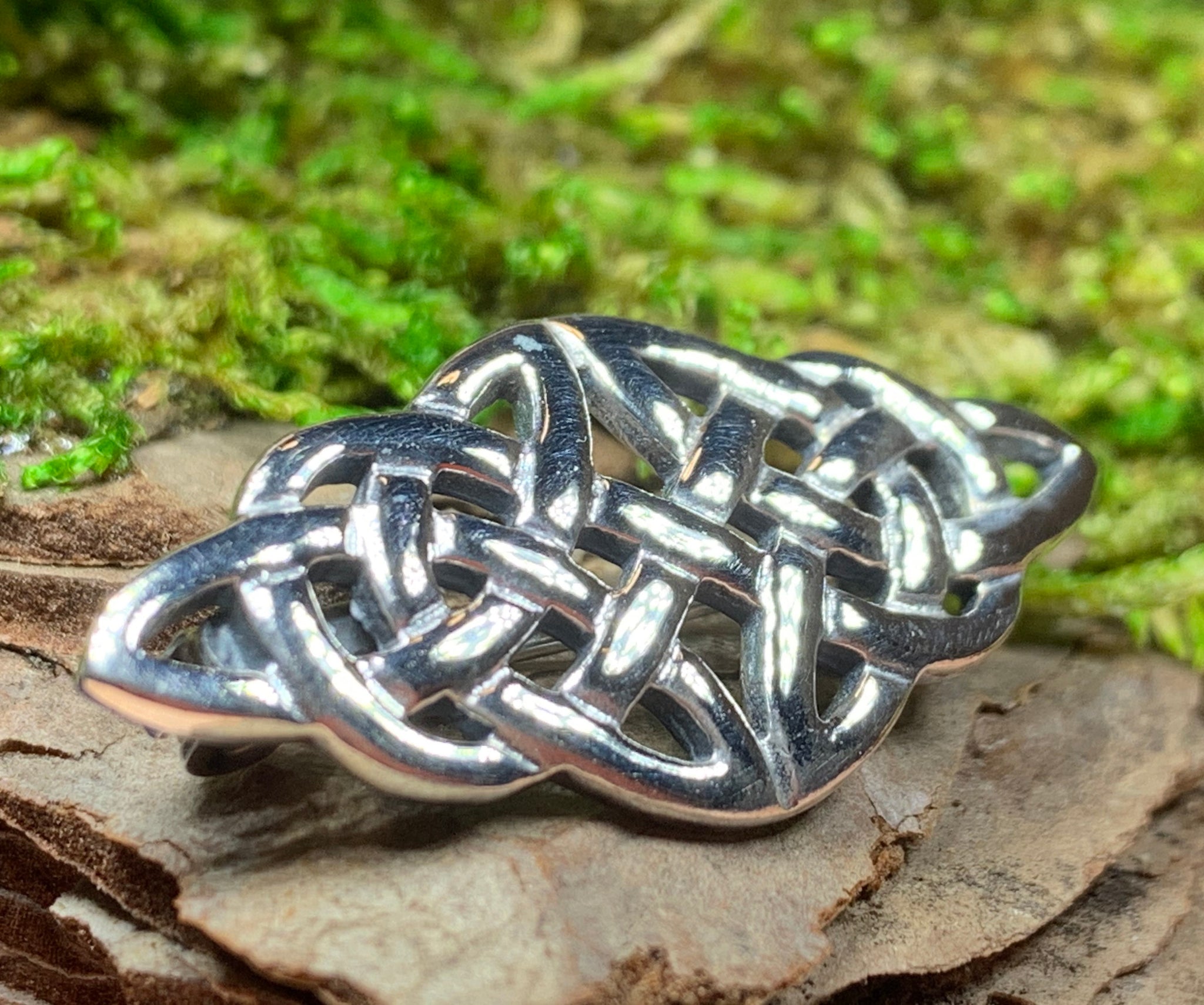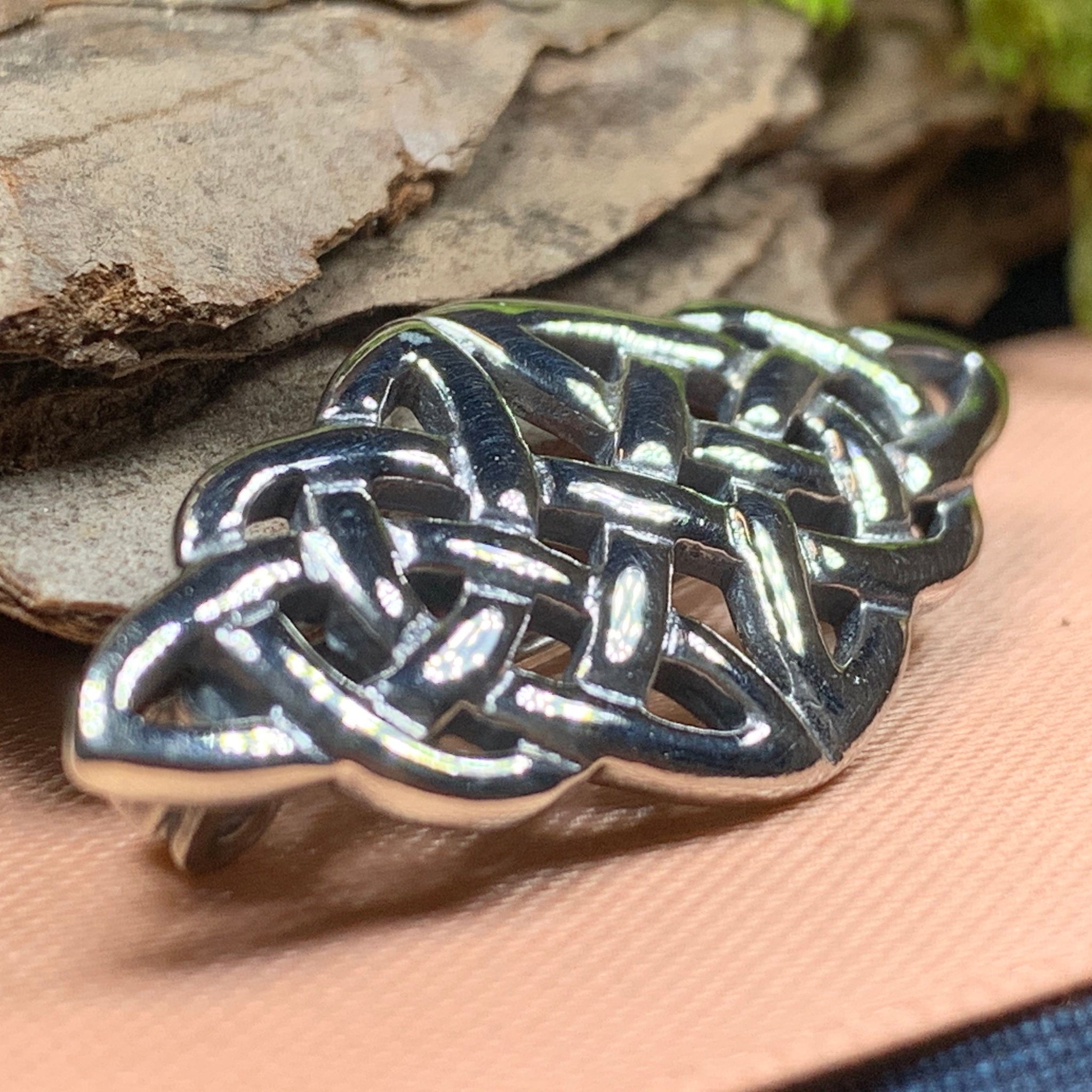 This solid sterling silver brooch features the classic Celtic knot design. A perfect brooch for a scarf, sweater, jacket or coat.