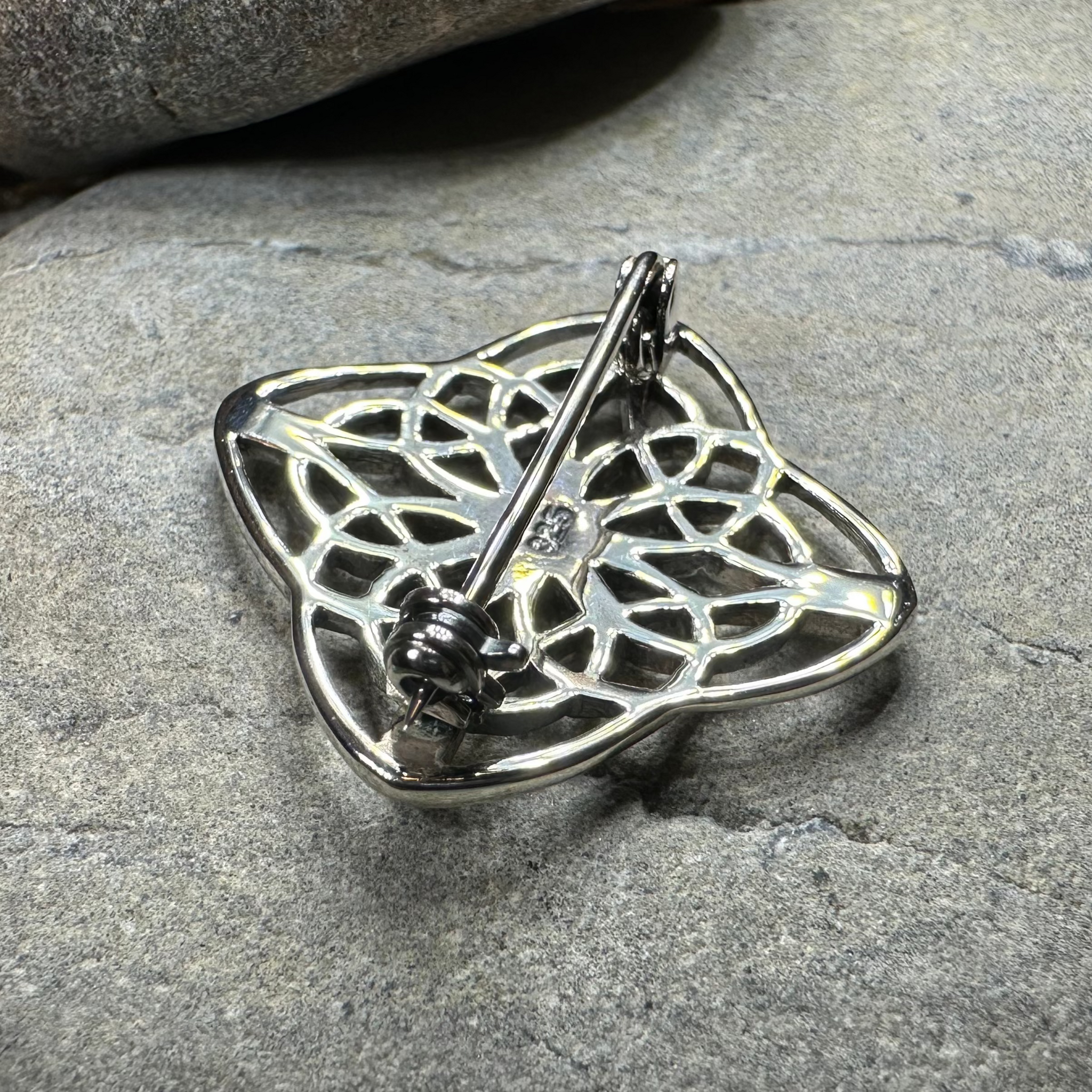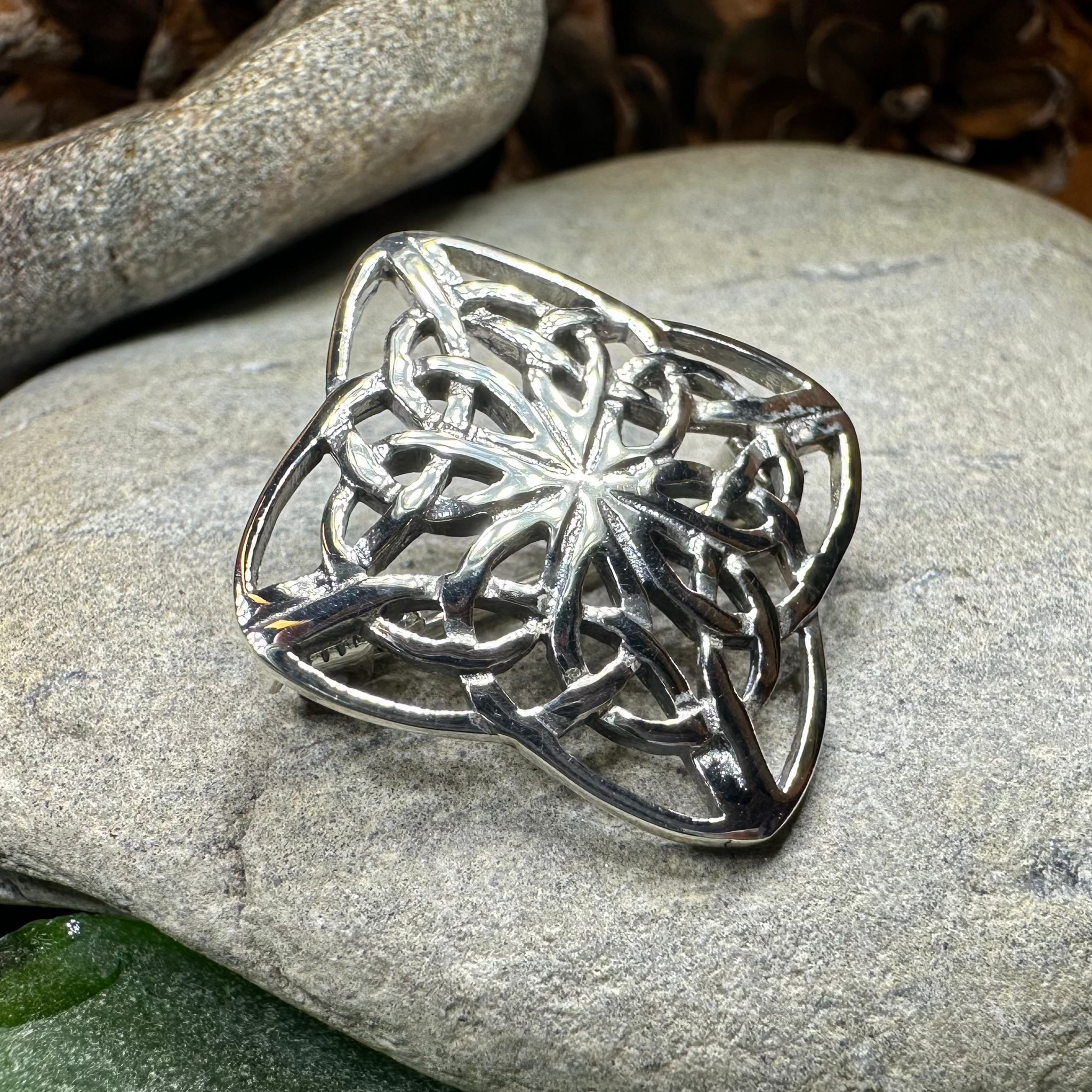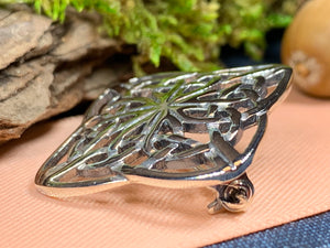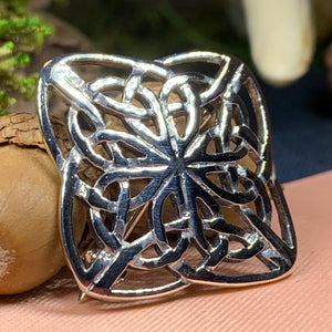 This solid sterling silver brooch features a classic Celtic knot design. A perfect brooch for a scarf, sweater, jacket or coat.