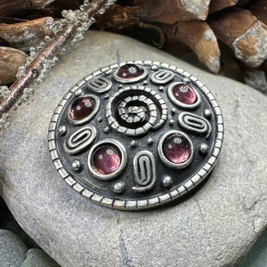 Mystical Crystal Celtic brooch in solid antiqued finished pewter and crystal or marble inserts in your choice of colors.
