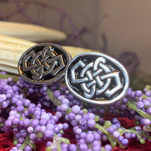Beautiful Celtic Fortune Knot oval shaped pewter cuff links that feature the classic Celtic Knot with high polish and enamel. The fortune knot brings good luck and prosperity to the wearer.