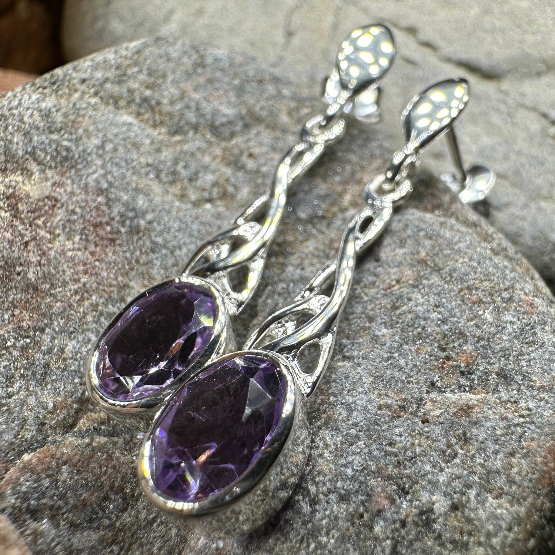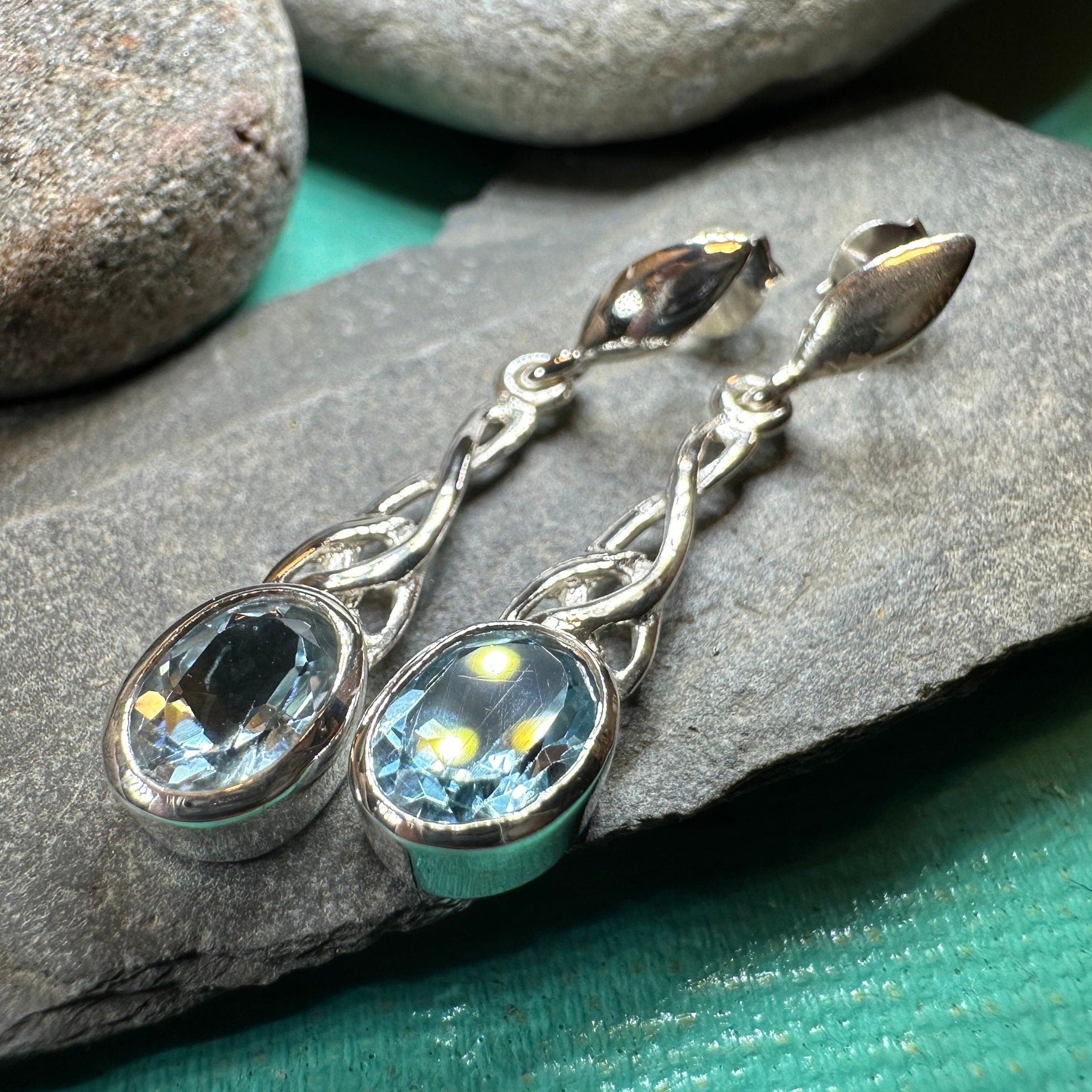These earrings are a work of art! A one carat, sparkling authentic gemstone set into sterling silver - on the front an elegant Celtic knot made with inter-connecting Celtic knots, on the back a post and push back closure for ease of wear.