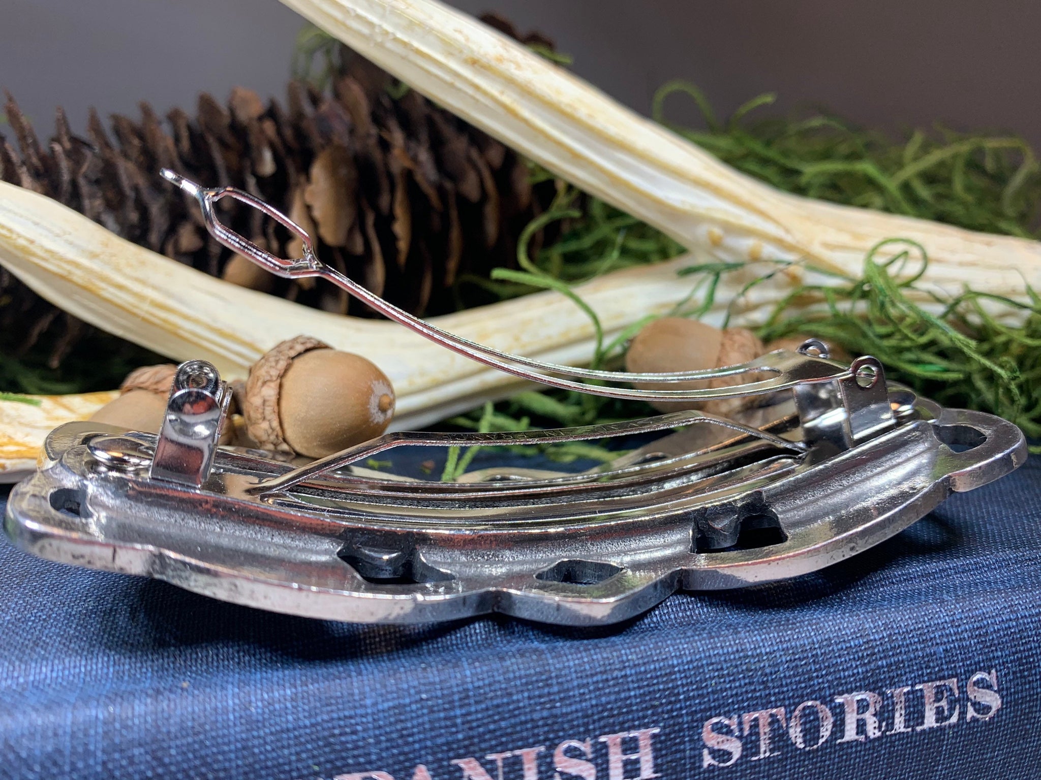 4" long x 1 1/2" wide - perfect for medium to thick hair! The solid pewter construction means this hair jewelry will last a lifetime!