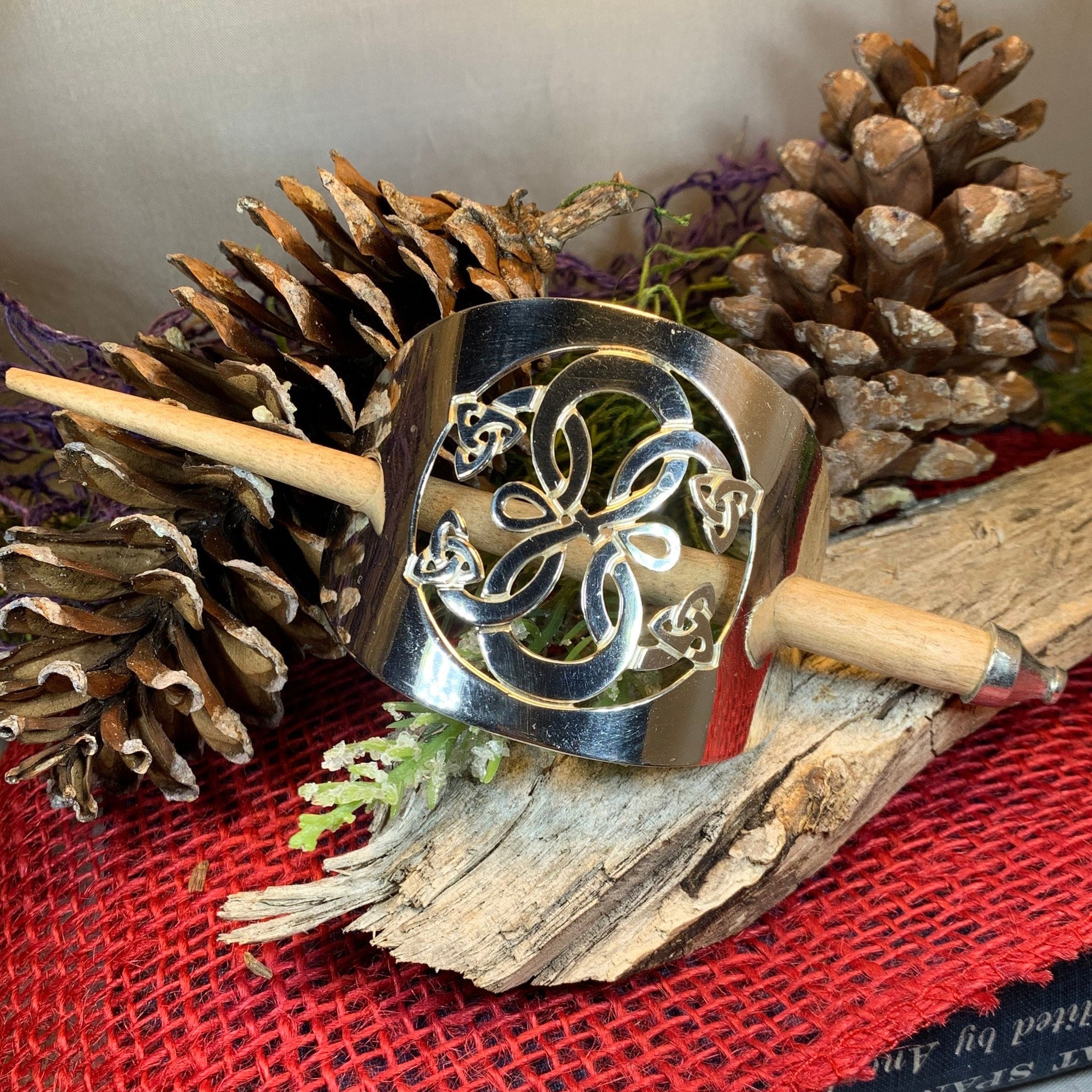 This unique hair slide uses the classic Celtic Knot called with Line of Life to create an interesting design that will celebrate Celtic culture and catch everyone's eye.