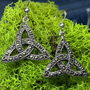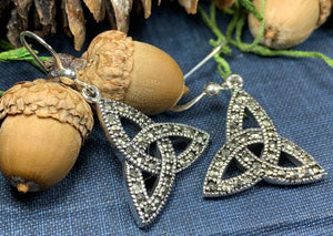 These earrings incorporate the two trinity knots with the elegant lines of Celtic knot work.