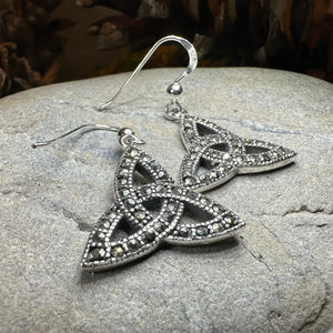 These earrings incorporate the two trinity knots with the elegant lines of Celtic knot work.