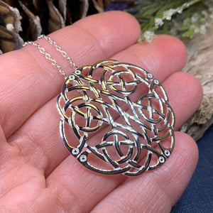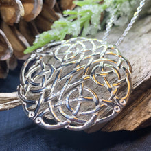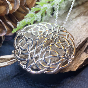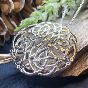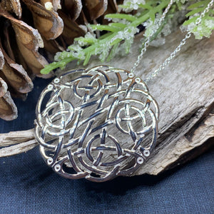 This handmade Celtic pendant is an Heirloom piece because it is in the classic Celtic Knot style with interlacing loops. With its intricate open knot work and beautiful presence it is a show stopper!
