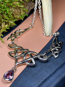 Pure Sterling Silver Celtic Queen Necklet in your choice of authentic gemstone with an adjustable 16" - 18" sterling silver chain with lobster claw clasp.