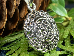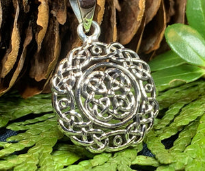 Meticulously crafted from sterling silver, it features an intricate Celtic knot design incorporating a love knot, symbolizing unending love, friendship, loyalty, and affection.