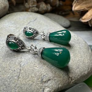 The agate in the shape of a raindrop and sparkle of the marcasite is the perfect combination. A beautiful and unique gift for your loved one!