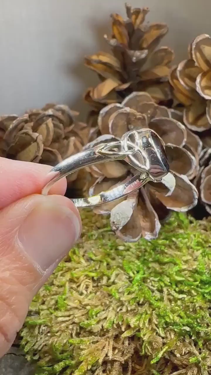 A unique design combining the traditional elements of the Celtic knot with a 2 carat pear shaped facted gemstone (Grade AAA stone) - solid sterling silver.
