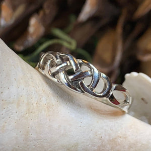 A unique design combining the traditional elements of the Celtic knot with a simple open Celtic knot design down the side of the ring - solid sterling silver.