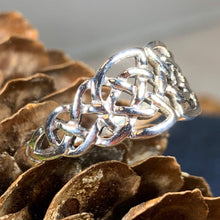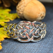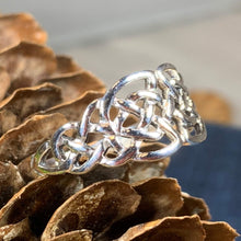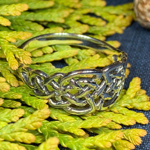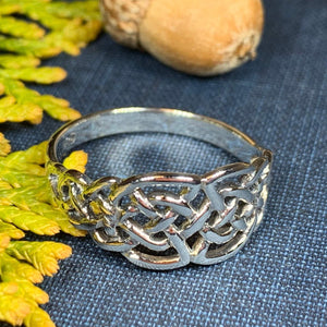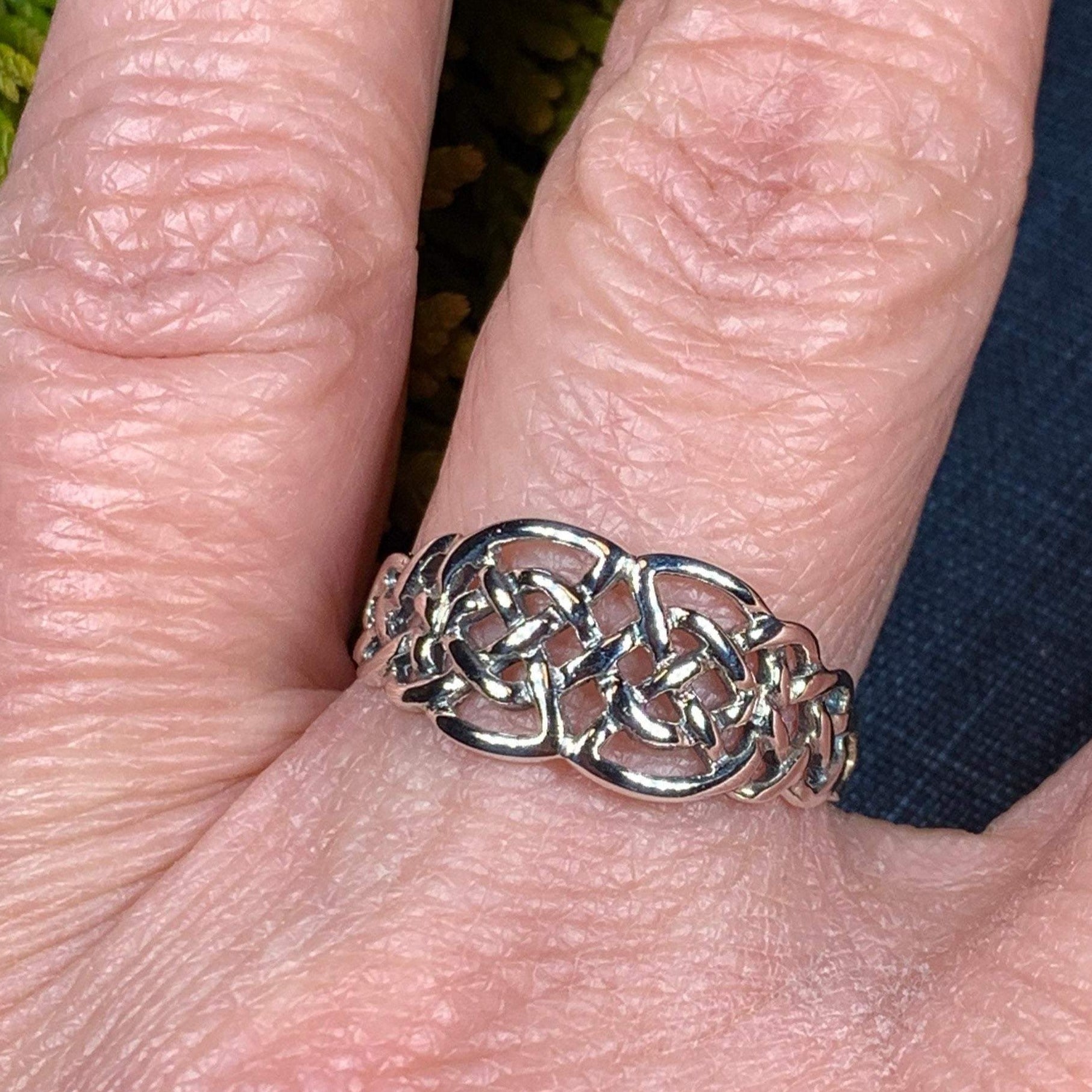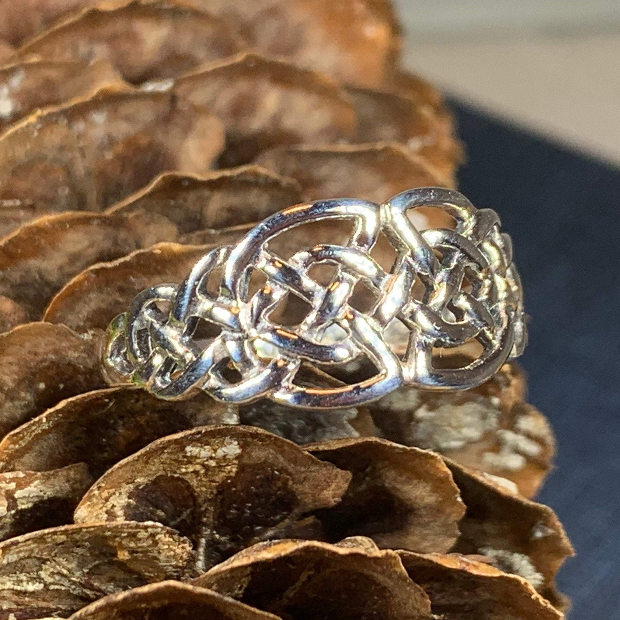 A unique design combining the traditional elements of the Celtic knot with open design going down the side of the finger - solid sterling silver.