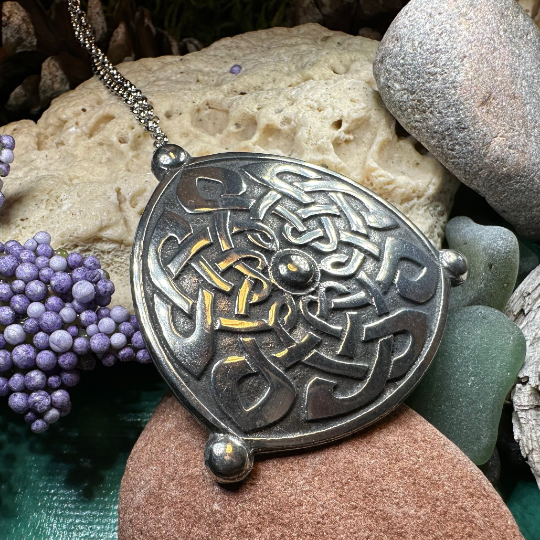 The beautiful detailing with Celtic elements give this necklace a special touch. Solid sterling silver. Celtic knots are representations of knots used for decoration, used extensively in the Celtic style.