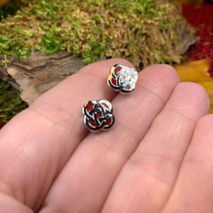 Attractive and colorful enamel Celtic Knot stud earrings that feature a whimsical design. Solid lead free pewter with enamel and your choice of colored enamel.