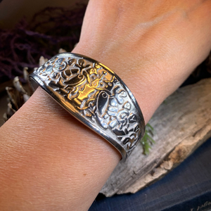 Stunning! Our highly polished Pewter Celtic Knot Bangle Bracelet features an ancient Celtic weave design with two love birds that goes back thousands of years, embraced on both sides by a Celtic knot work pattern of leaves and swirls. Made of heavy, solid pewter that will never tarnish and designed to last a lifetime. A beautiful gift!