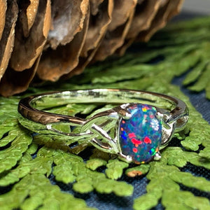 The Celtic Magic ring captures the enchanting glow that illuminates rolling hills and cloaks deep forests in a captivating blend of blue and red hues.