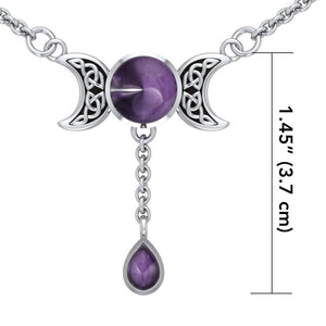 A beautiful 1 1/2" x 1" pendant (including teardrop dangle) with 3 carat gemstone stone in solid sterling silver with an adjustable 16-18 inch sterling silver chain with lobster claw clasp.