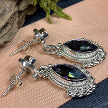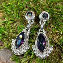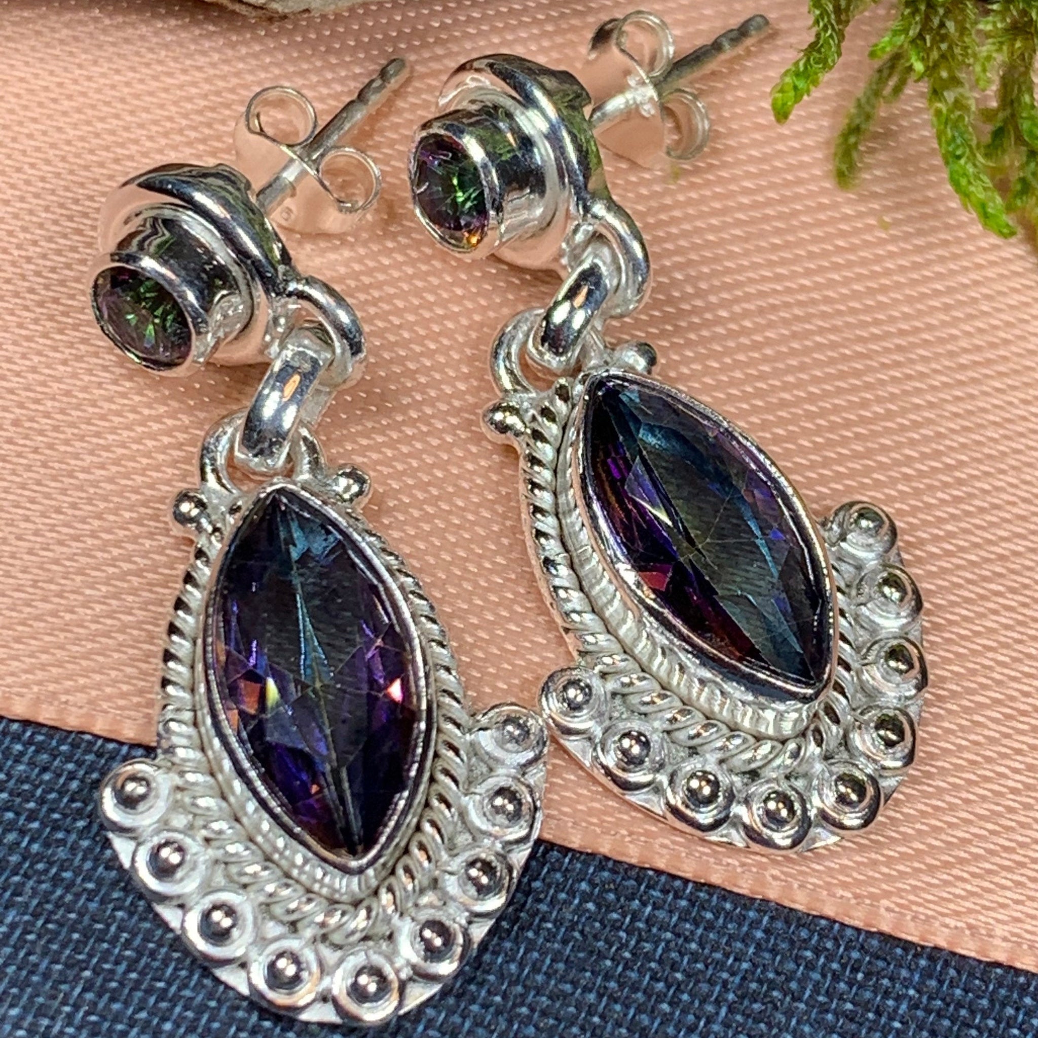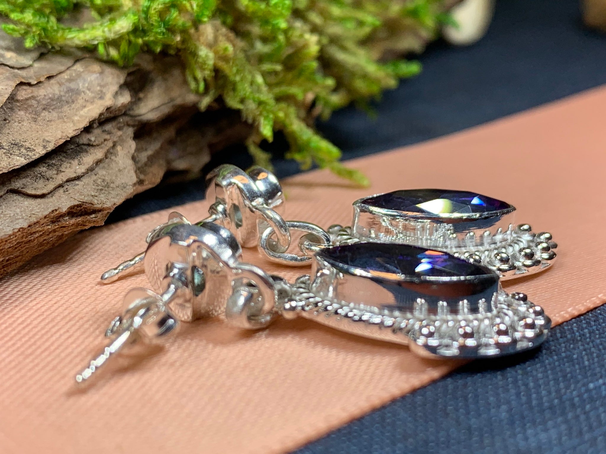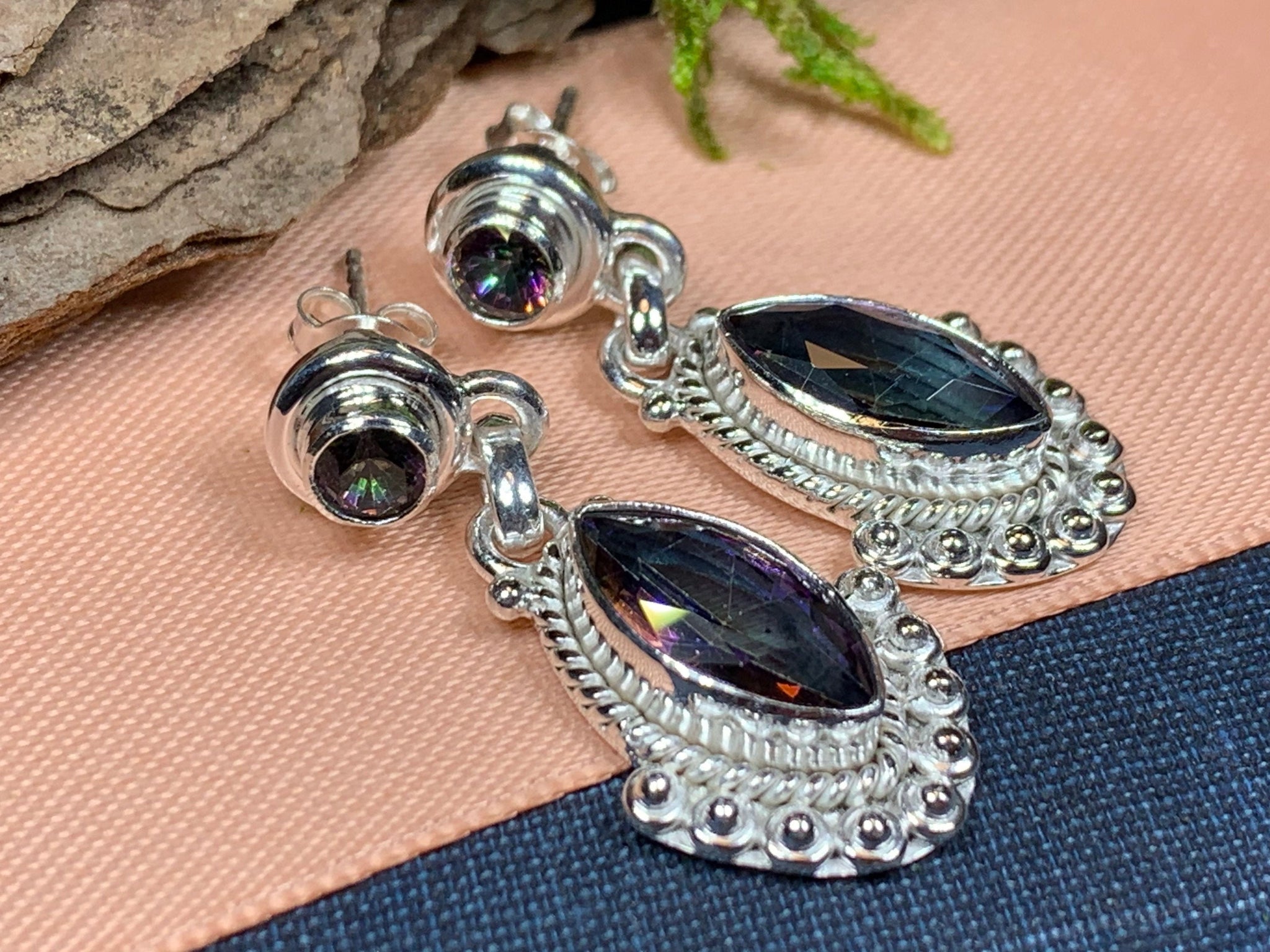 These 1" x 1/2" solid sterling silver with authentic mystic topaz or rainbow moonstone earrings are feminine and lovely.