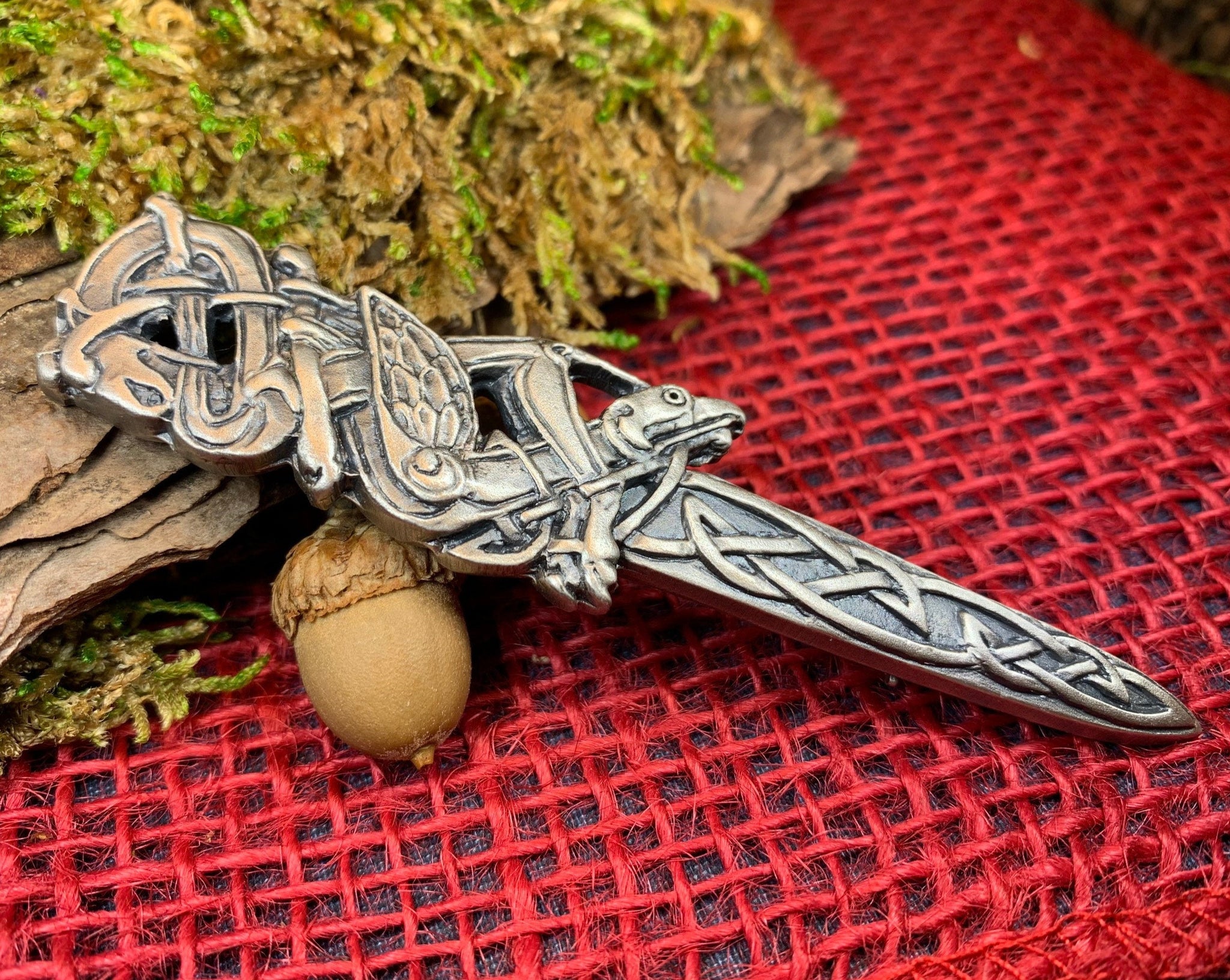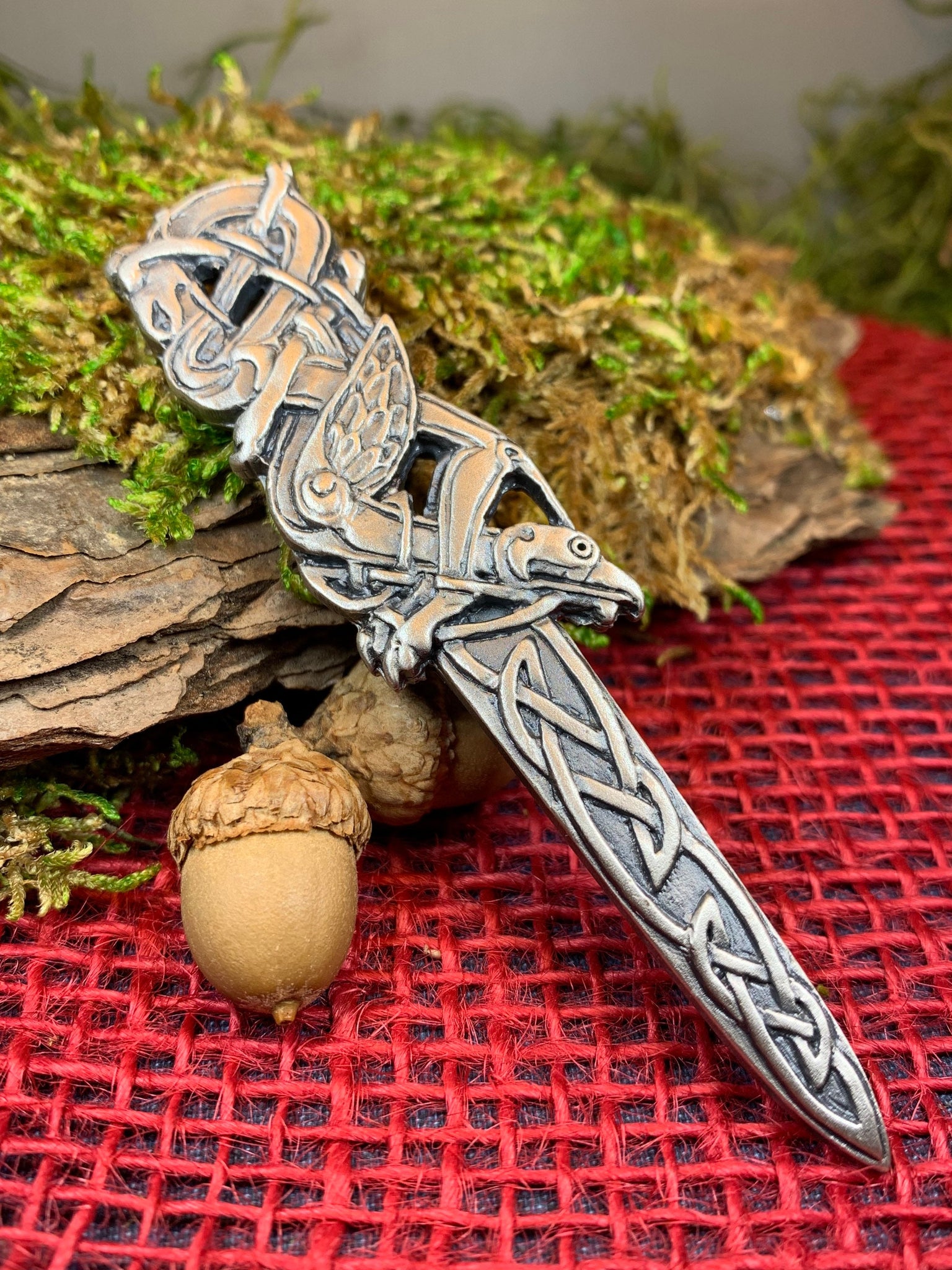 This beautiful kilt pin is in the traditional design of a stylized Celtic raven with the twists and turns of a Celtic knot. A strong pin to handle any kilt apron or tartan - also perfect for any coat, sweater or shawl.