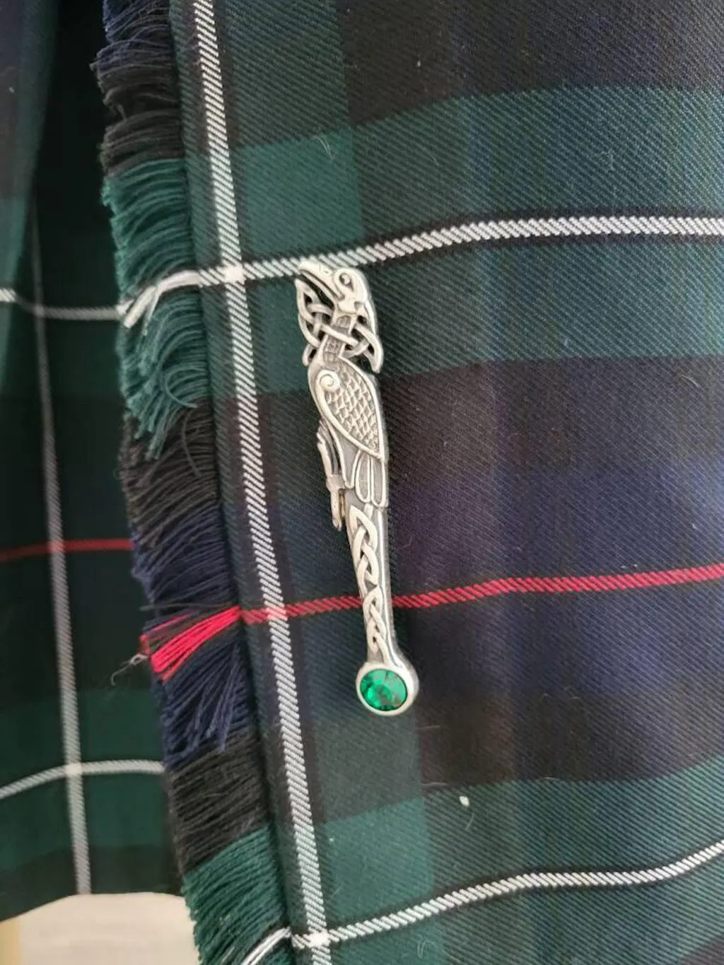 This beautiful kilt pin is in the traditional design of a stylized Celtic raven with the twists and turns of a Celtic knot. A strong pin to handle any kilt apron or tartan - also perfect for any coat, sweater or shawl.