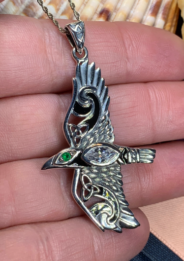 The mythical wisdom of a Raven ~ Solid Sterling Silver Necklace