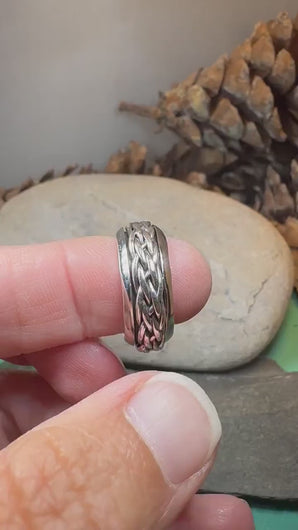 Solid Sterling Silver Celtic Knot Ring with Celtic Knotwork.