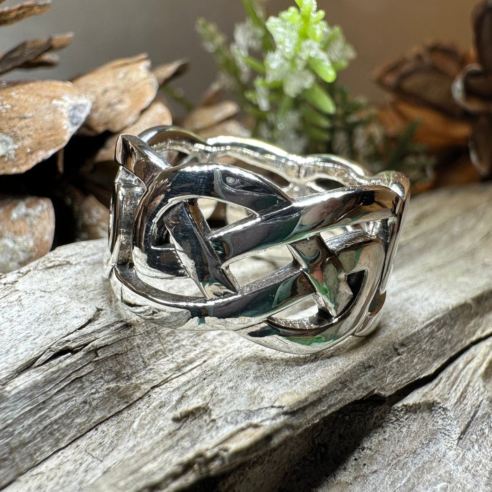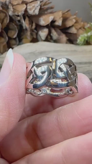Solid Sterling Silver Celtic Knot Ring with open Celtic Knotwork.