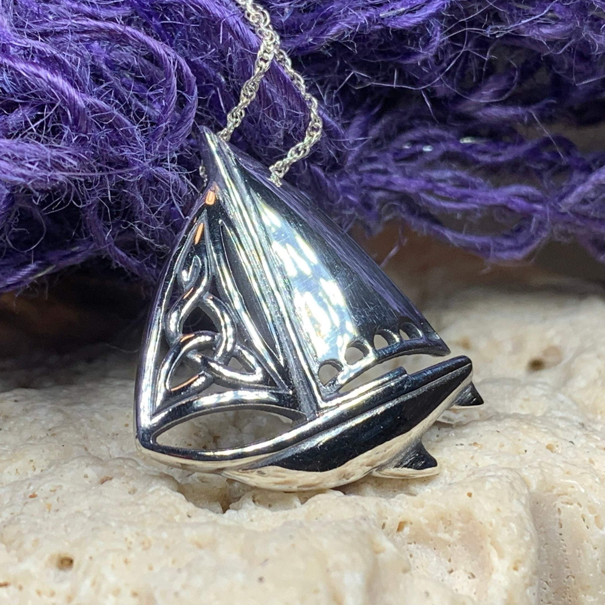 Set sail on a stylish adventure with the Celtic Sailboat Necklace, expertly crafted from high-quality sterling silver.