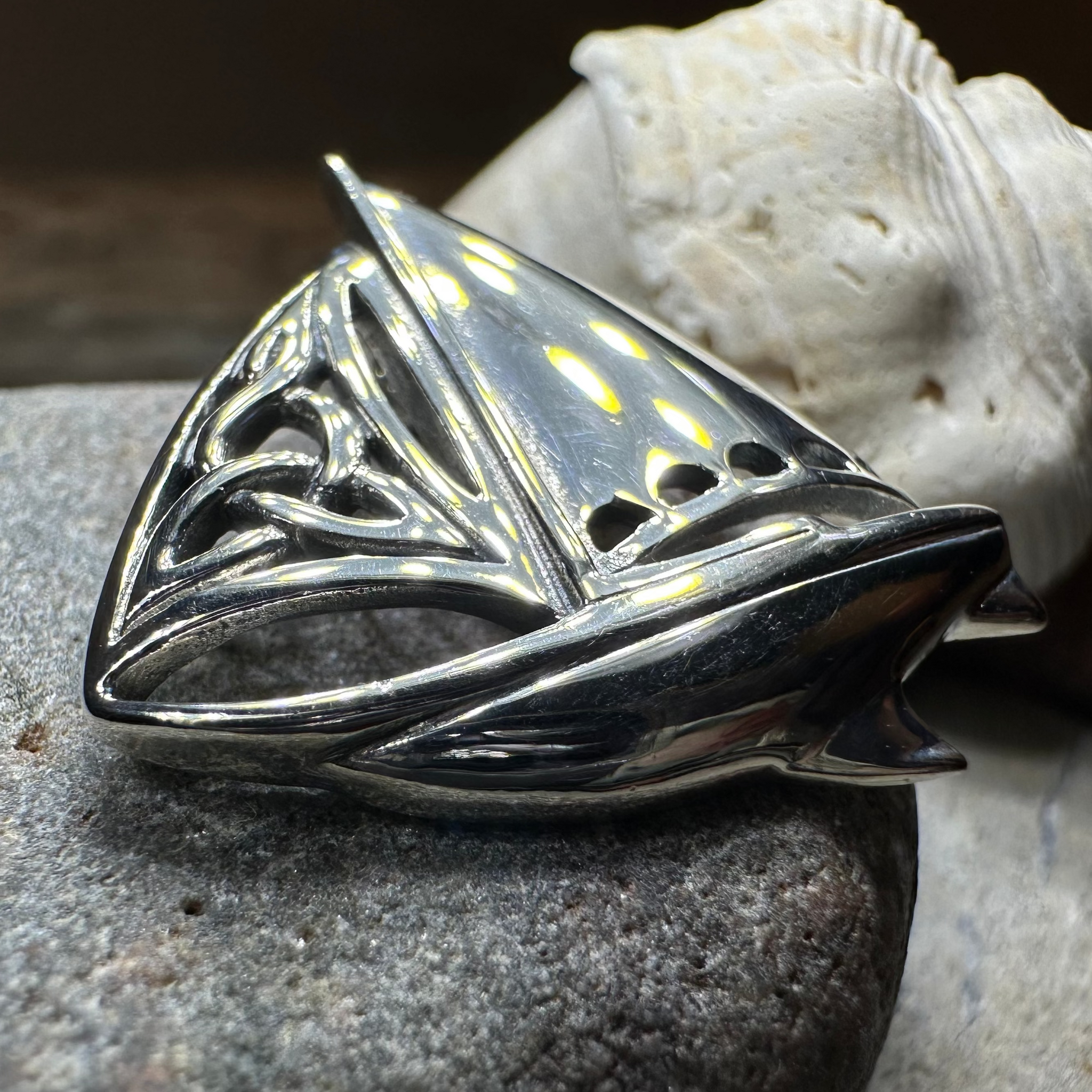 This charming pendant captures the exhilarating feeling of wind in your hair as you navigate the open waters, while the intricate Celtic knot detailing adds a touch of timeless artistry and mystique.