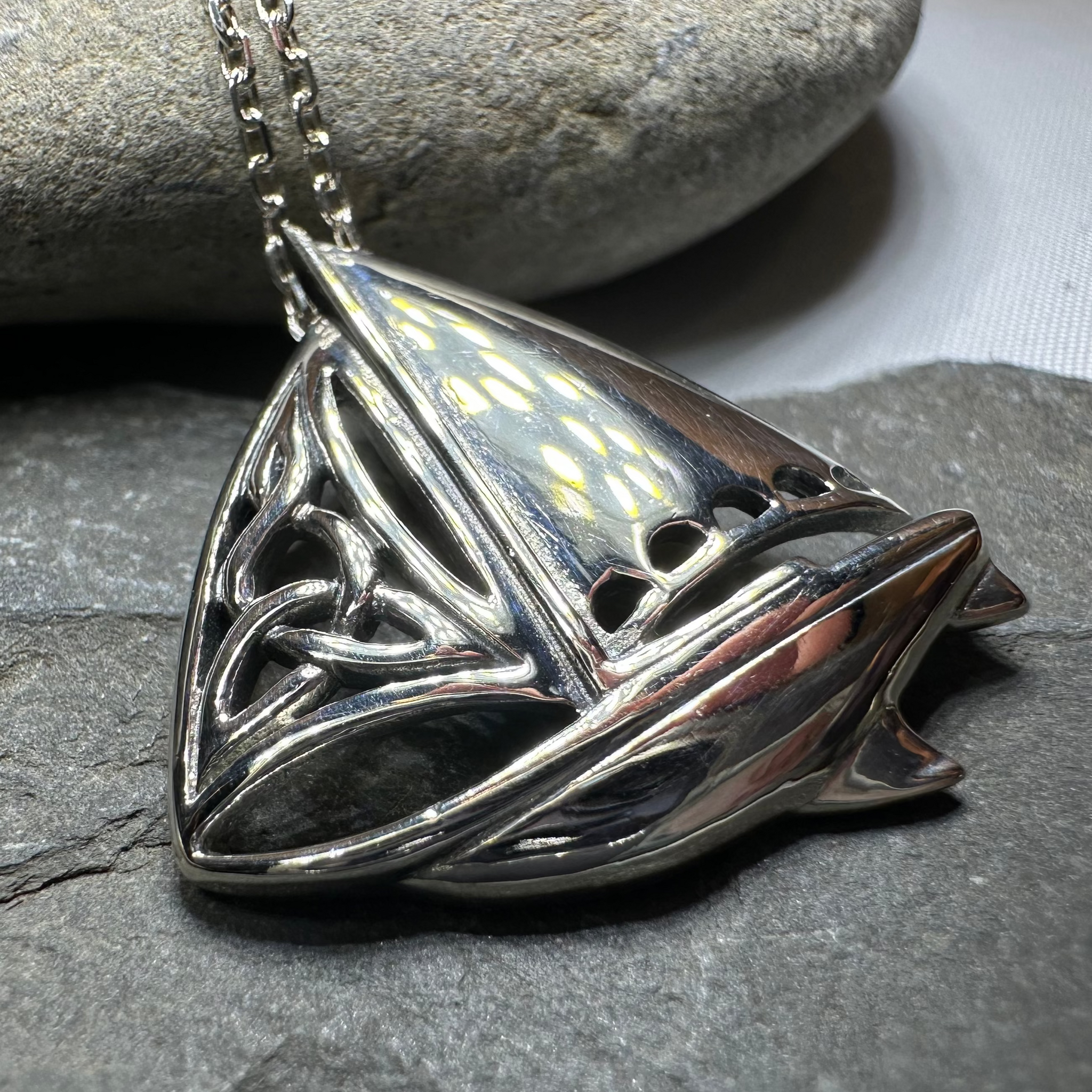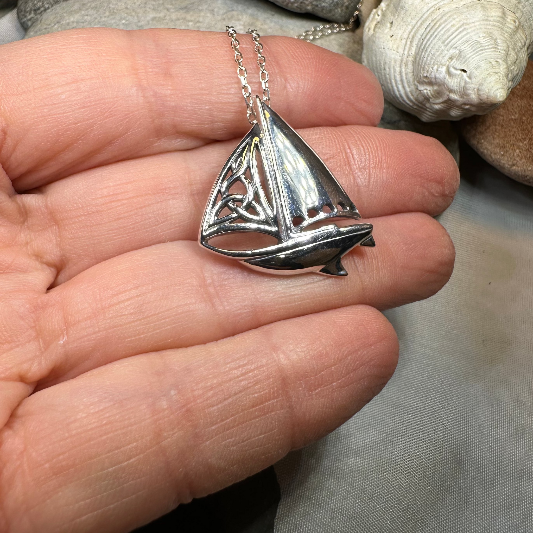 Set sail on a stylish adventure with the Celtic Sailboat Necklace, expertly crafted from high-quality sterling silver.