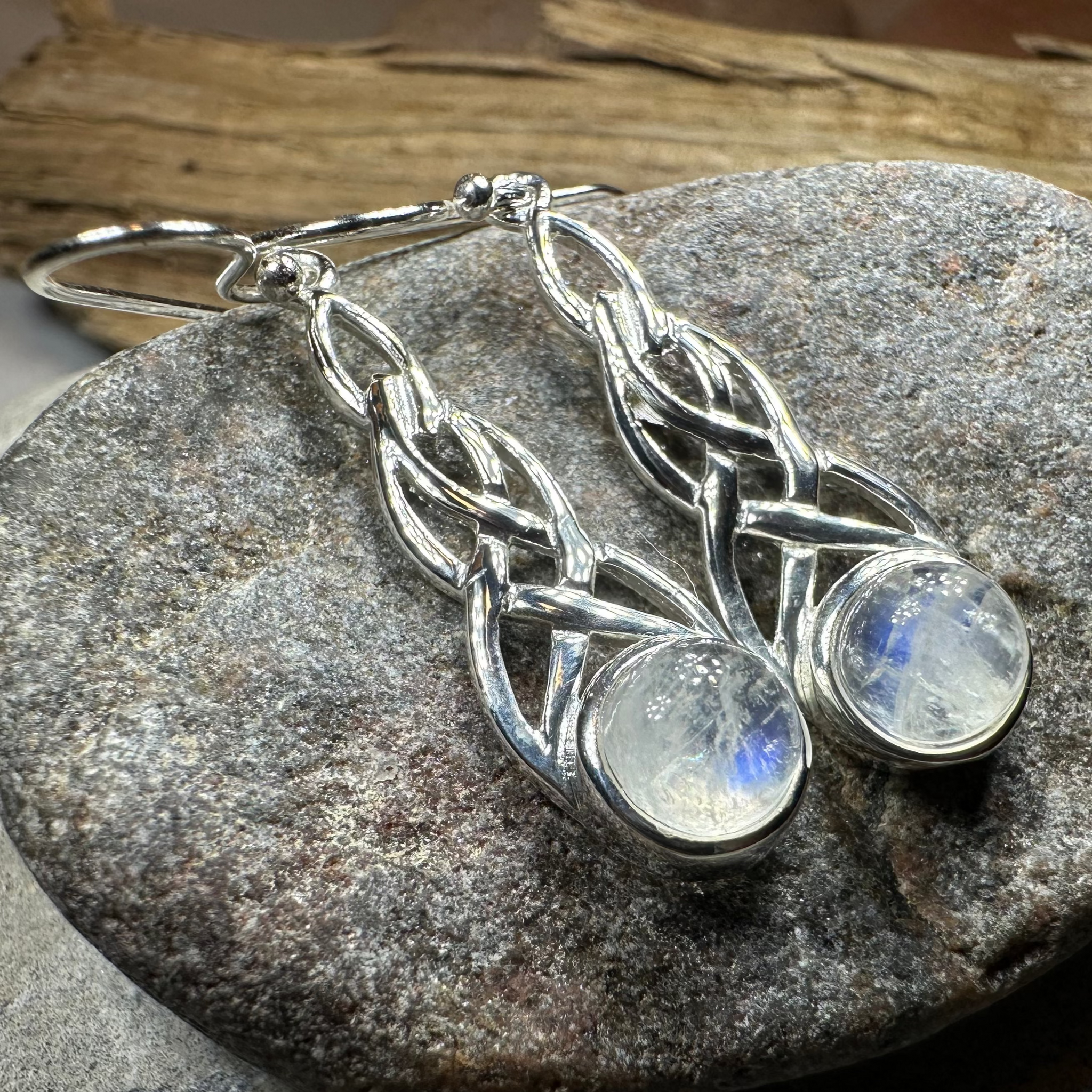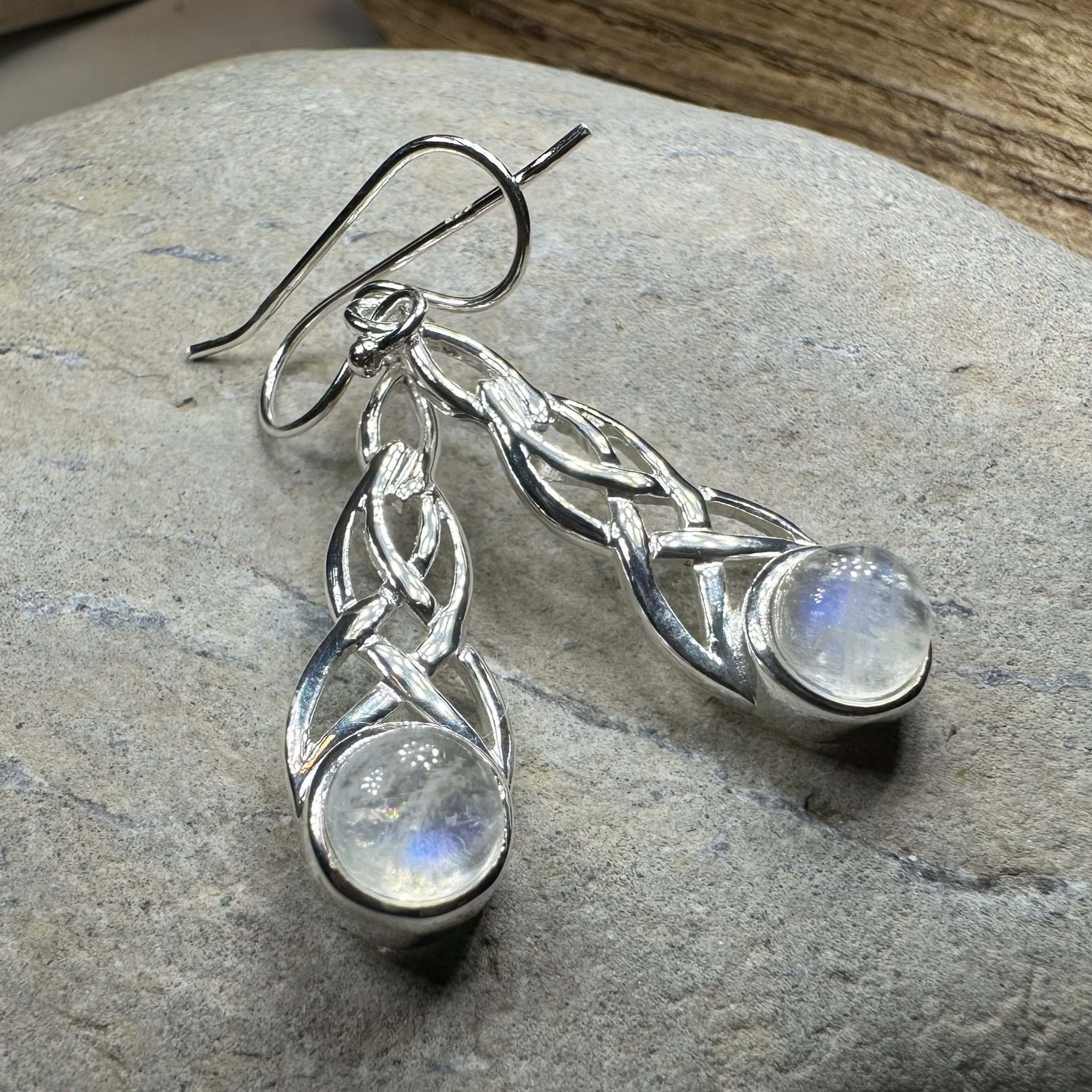 Solid Sterling Silver Earrings with natural rainbow moonstone.