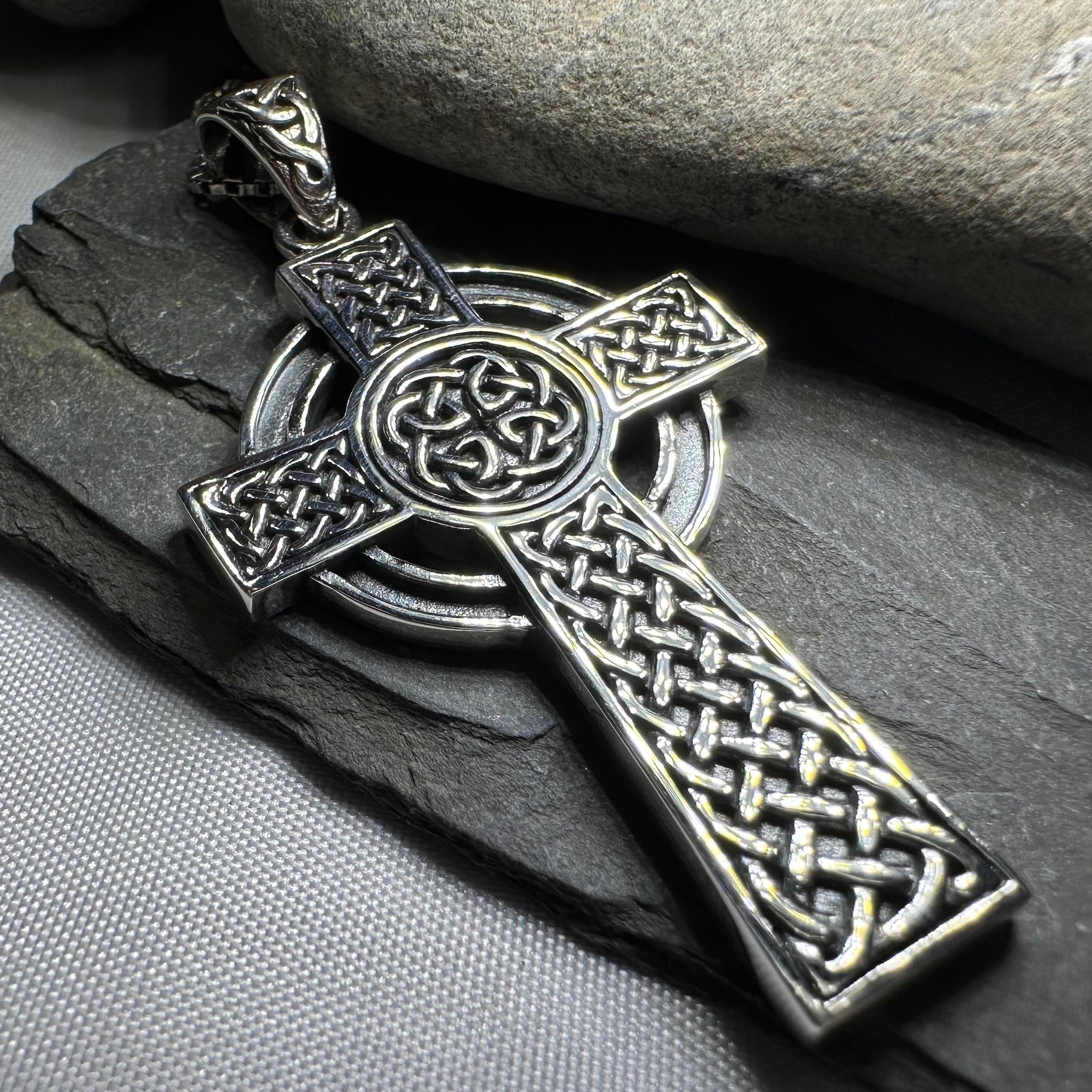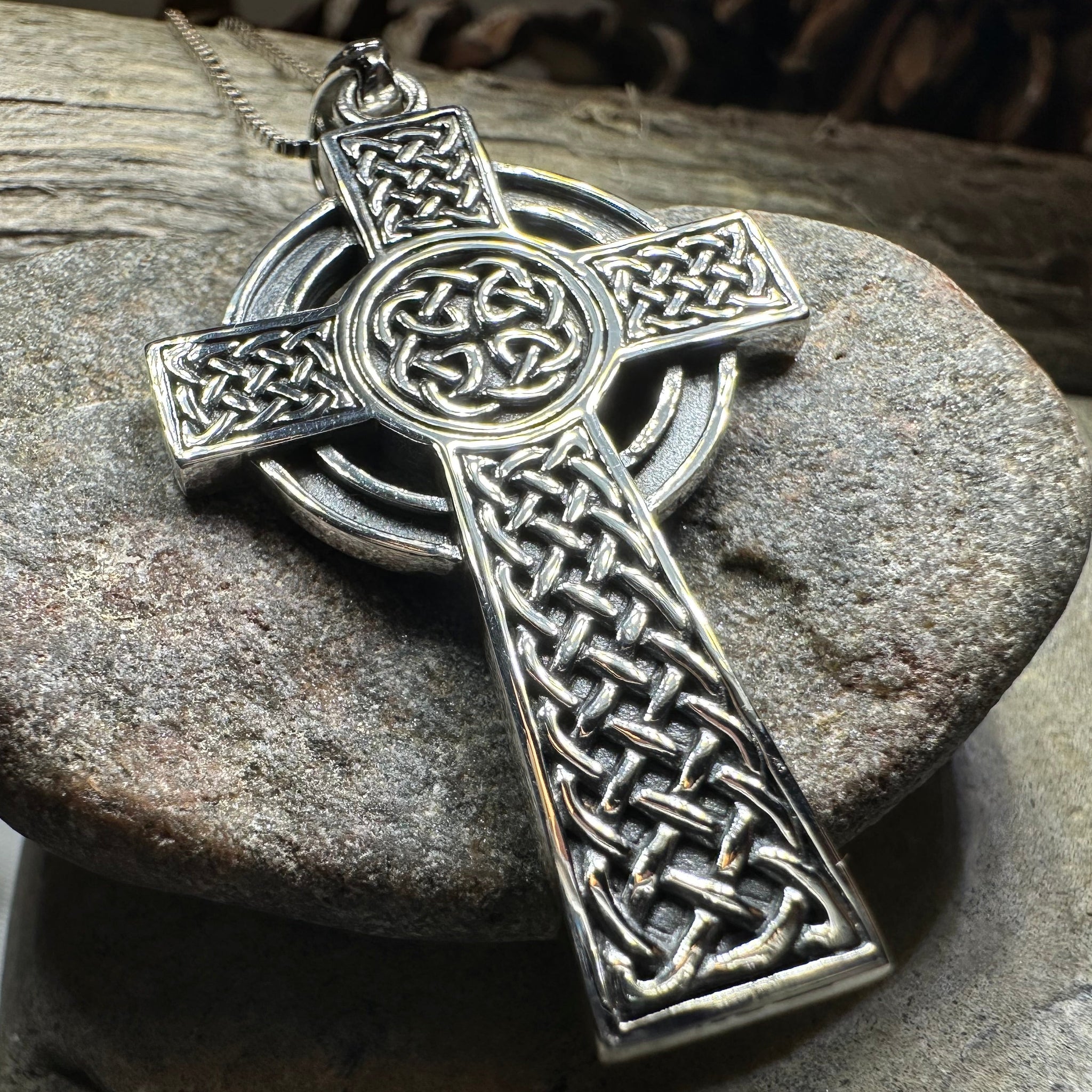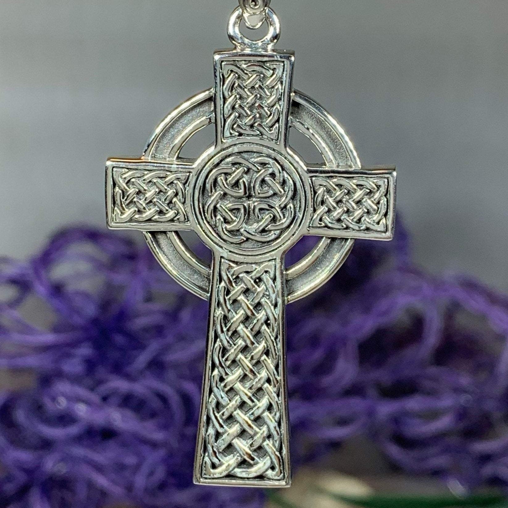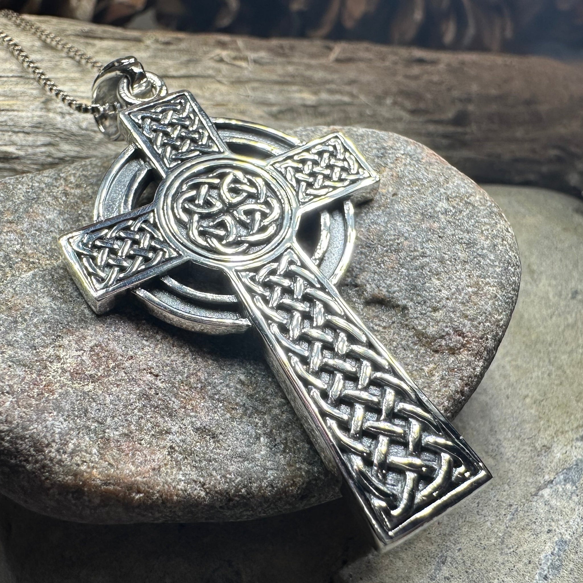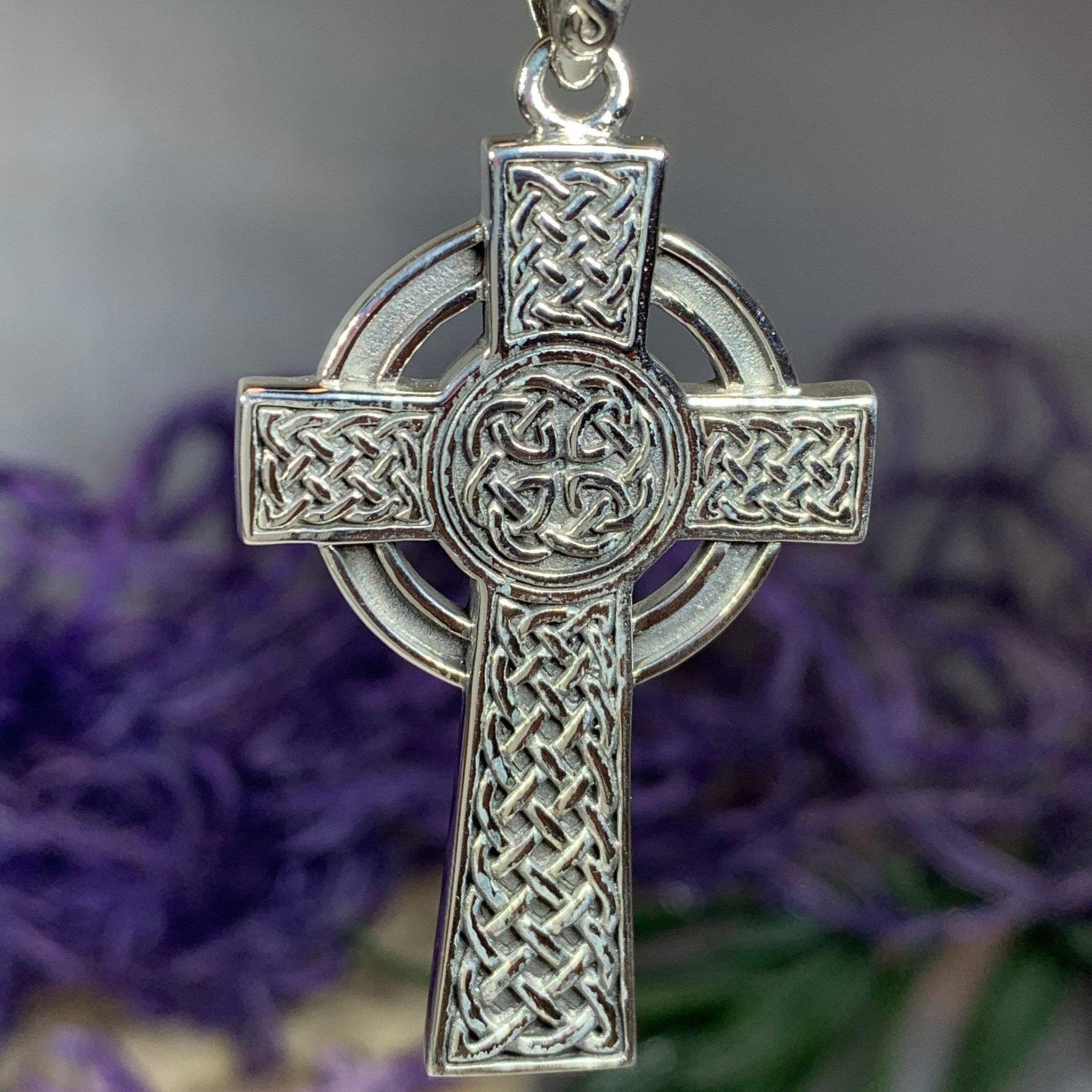 This cross is a replica of the many beautiful Celtic crosses found in Ireland and Scotland. A highly attractive Celtic Sterling Silver Cross, with a design based on a traditional stone carved Celtic Cross.