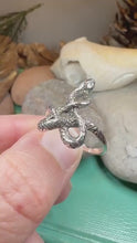 A unique design combining the traditional elements of the Celtic knot with the elegance of a twisting snake going up the front of the finger - solid sterling silver.