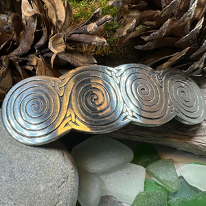Pewter Celtic Spiral Hair Clip is a perfect accessory to dress up a ponytail, bun or any hair style. The detail on this piece is amazing - you can see every detail and each spiral is topped with a tiny trinity knot!