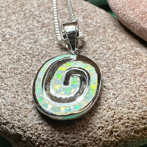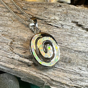White fire opal Celtic Spiral Necklace in solid sterling silver.