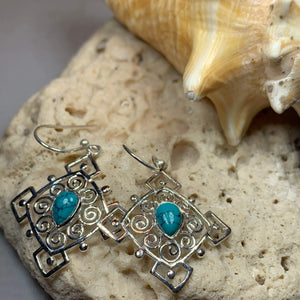 Beautiful classic style dangle earrings with the gorgeous colors of copper turquoise will dazzle you! This turquoise stone is known for its varied vibrant, rich color.