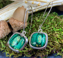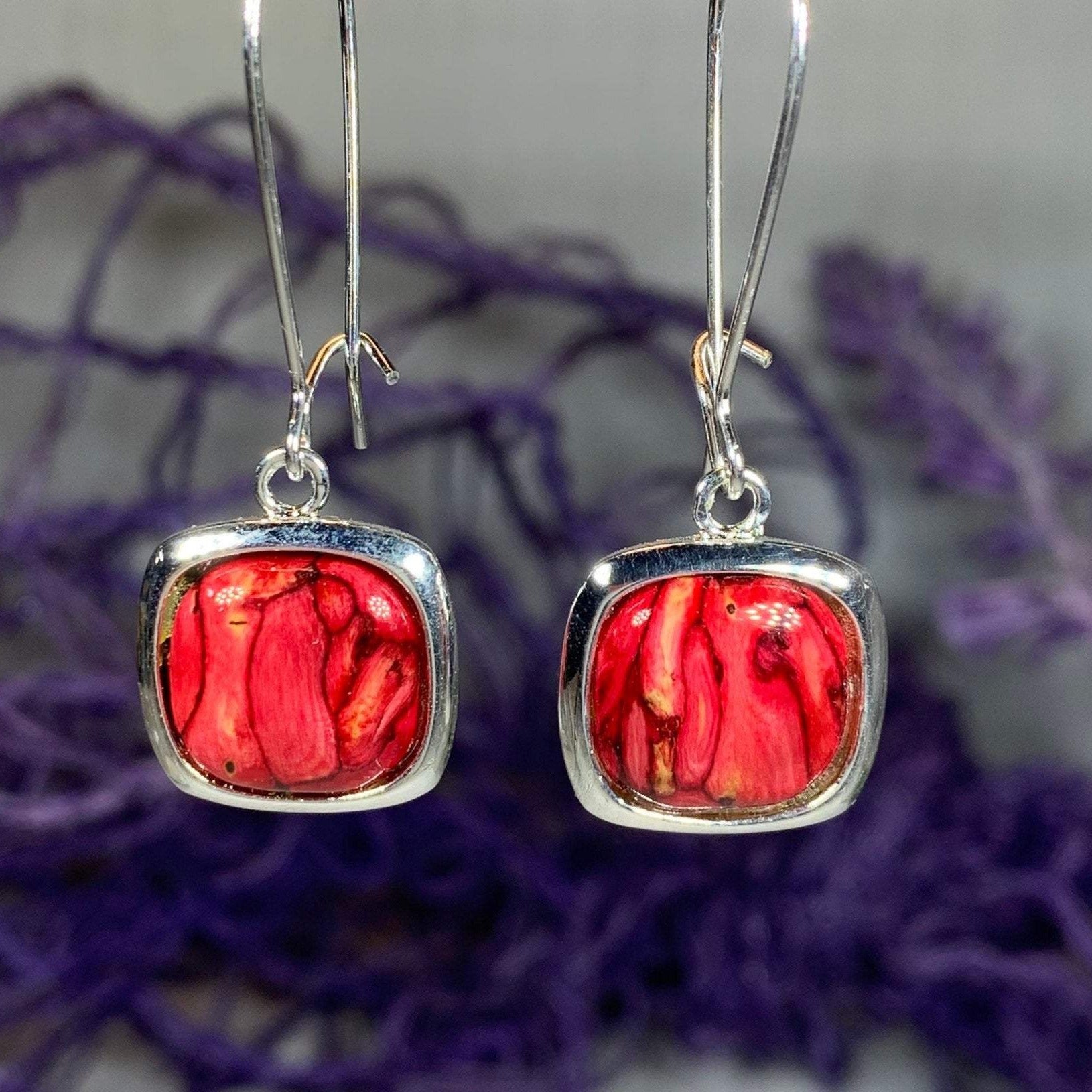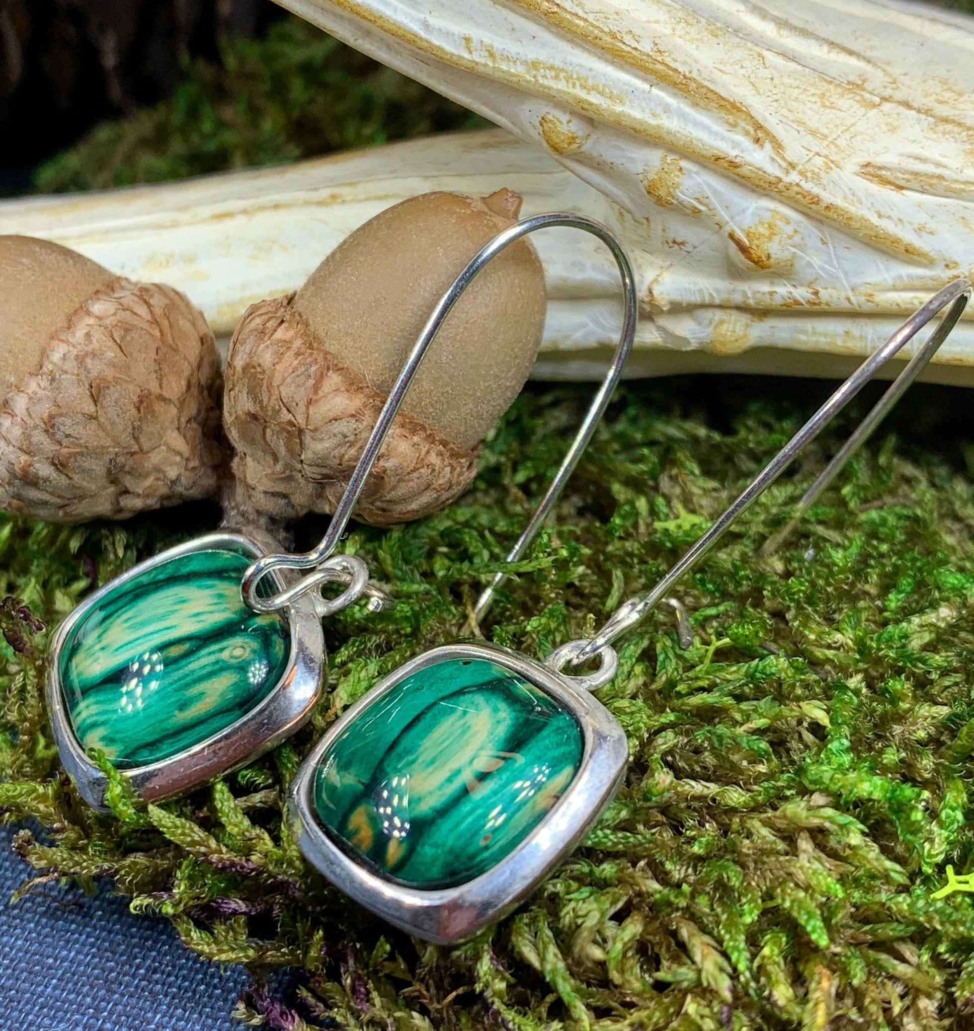 Beautiful Celtic square design earrings with a lovely heather stone. Heather stone is hand created so colors will vary.